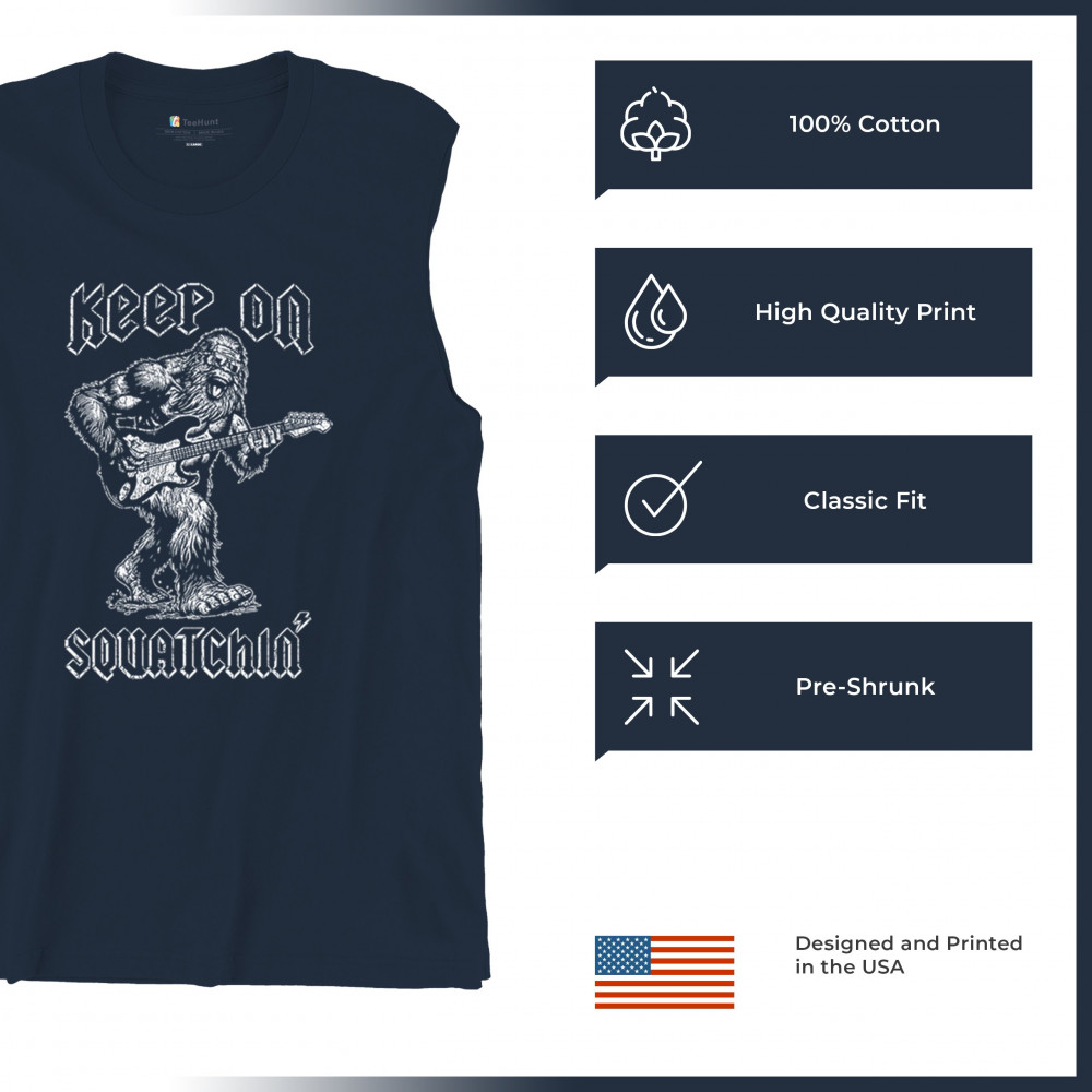 Celebrate music and adventure with the "Keep on Squatchin’" design! Bigfoot rocking a guitar makes this perfect for Sasquatch and music fans.