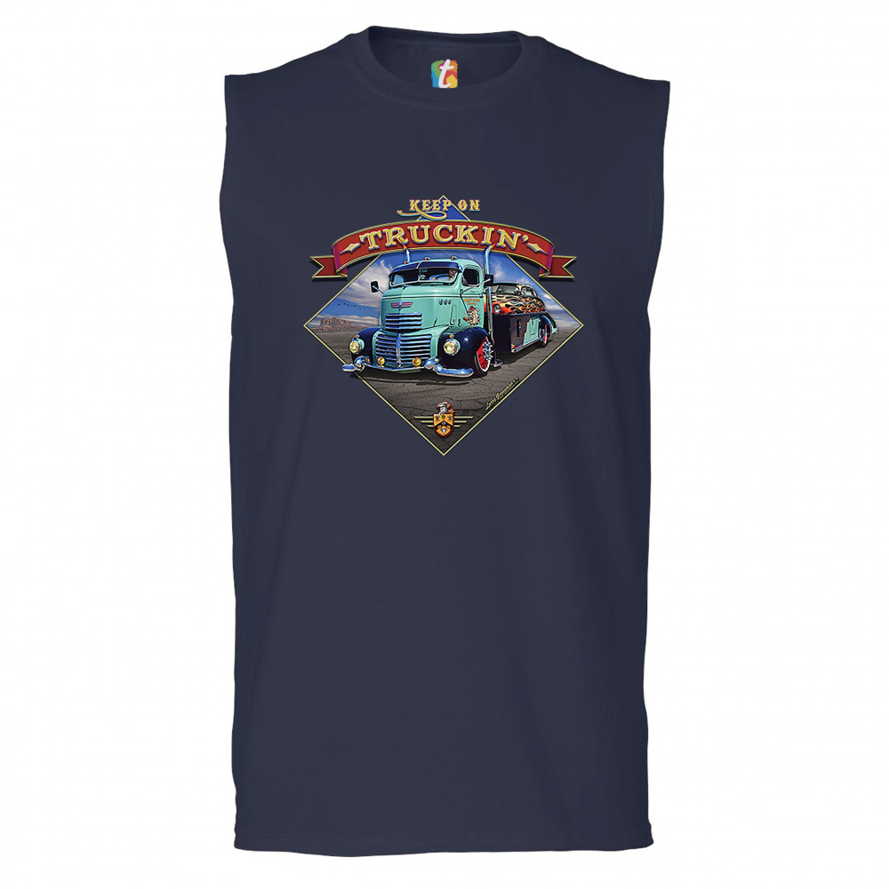 KEEP ON TRUCKIN' muscle shirt route 66 retro vintage truck driver men's navy blue