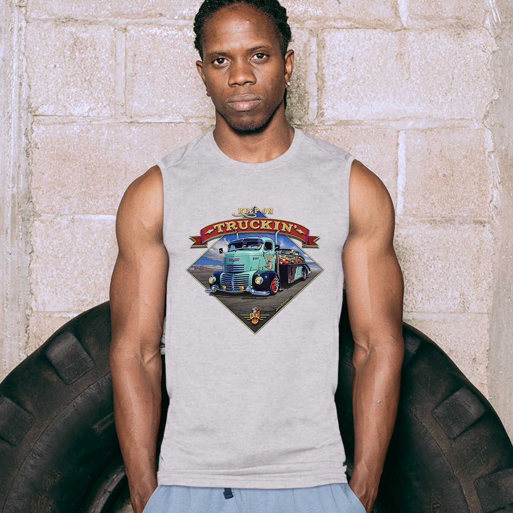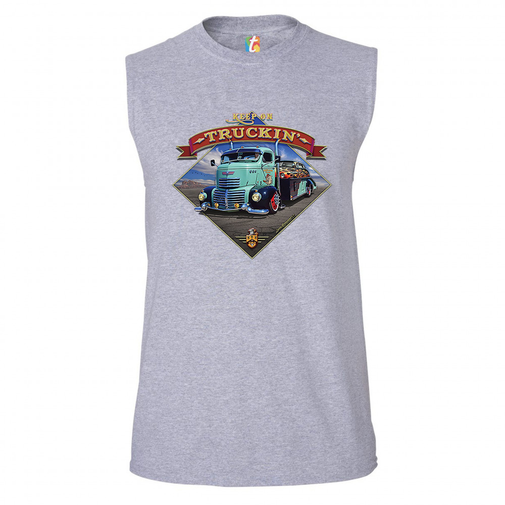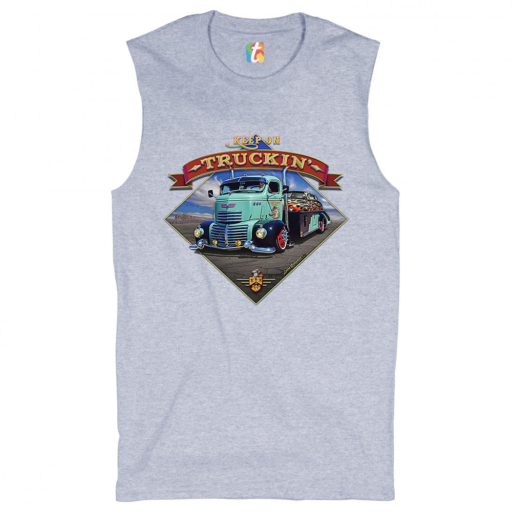 KEEP ON TRUCKIN' muscle shirt route 66 retro vintage truck driver men's gray