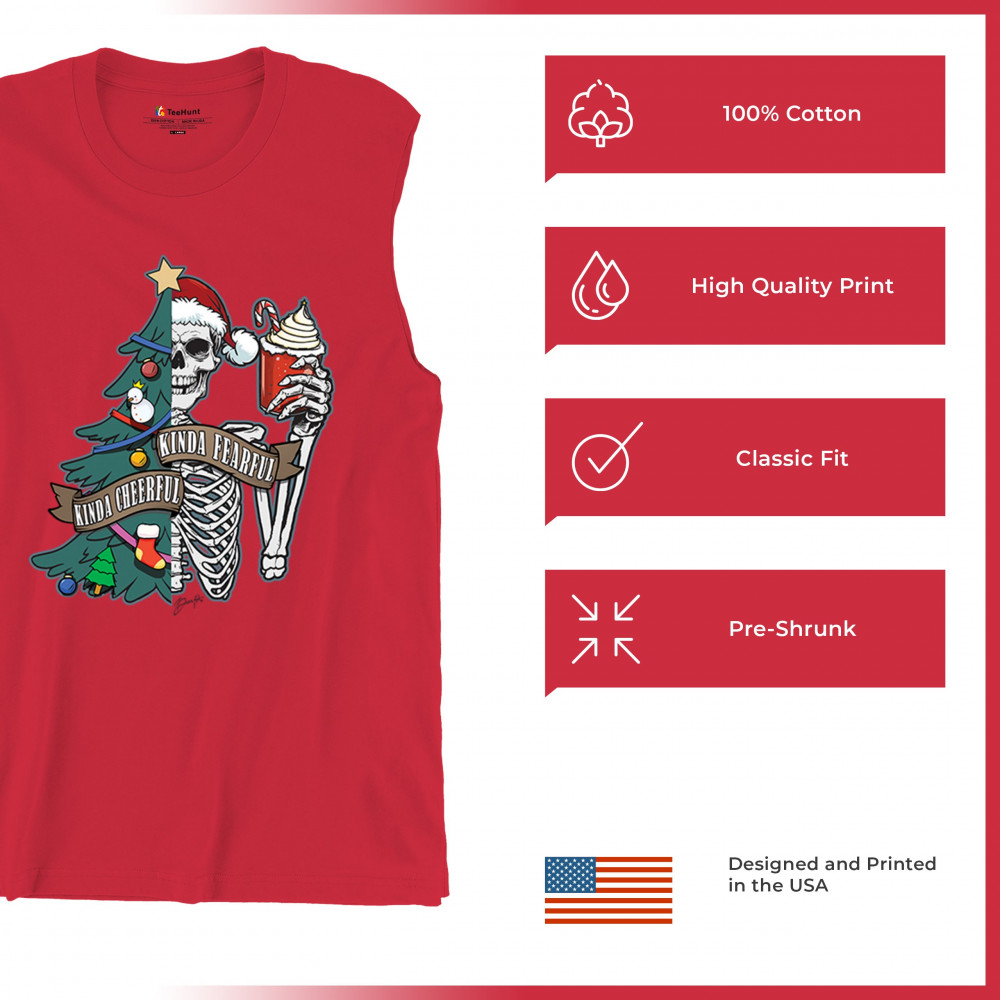 This creative Kinda Cheerful, Kinda Fearful design is a perfect blend of festive and spooky fun! Featuring a half-decorated Christmas tree and skeleton, it’s ideal for those who love combining Halloween and Christmas vibes. Great for secret Santa gifts, matching holiday pajamas, or rocking at your next ugly sweater contest. Perfect for office parties, family mornings, or simply adding some unique charm to your Feliz Navidad celebrations.