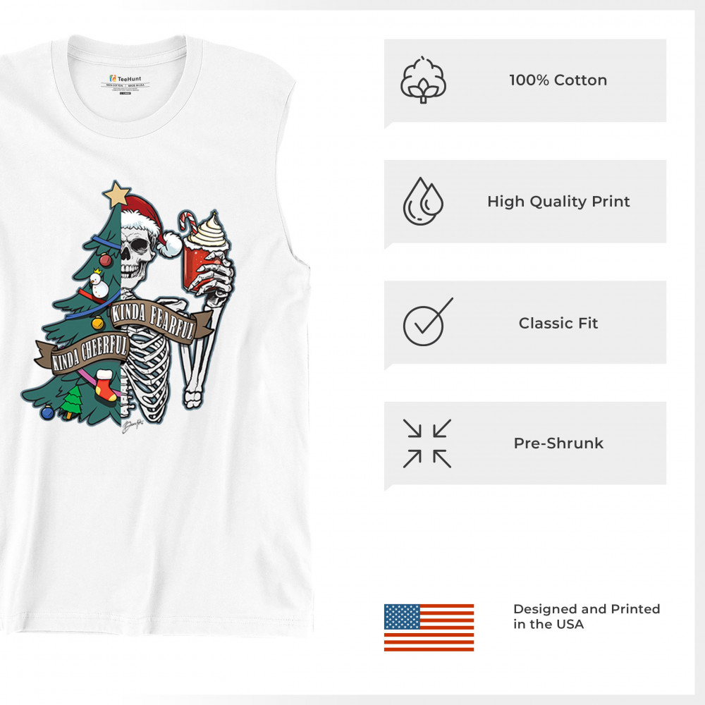 This creative Kinda Cheerful, Kinda Fearful design is a perfect blend of festive and spooky fun! Featuring a half-decorated Christmas tree and skeleton, it’s ideal for those who love combining Halloween and Christmas vibes. Great for secret Santa gifts, matching holiday pajamas, or rocking at your next ugly sweater contest. Perfect for office parties, family mornings, or simply adding some unique charm to your Feliz Navidad celebrations.