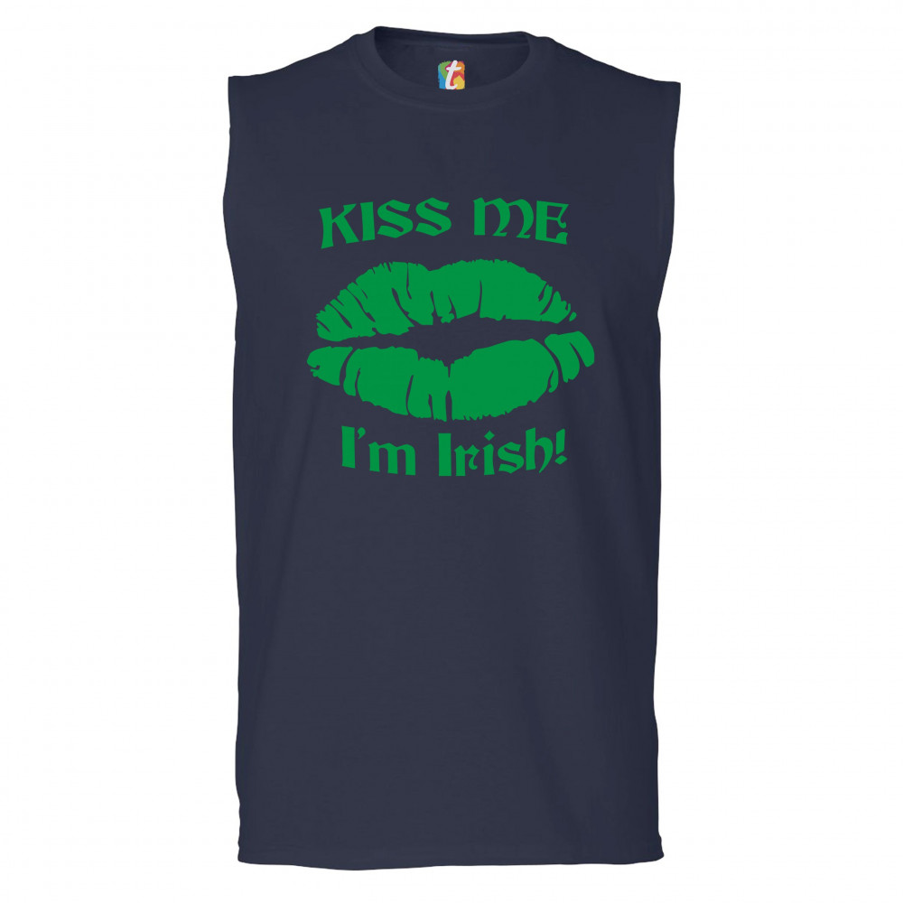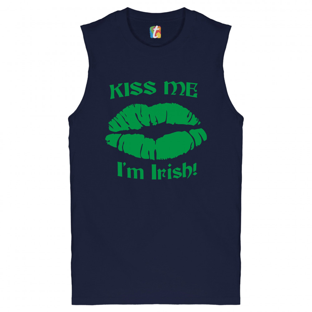 KISS ME I'M IRISH! muscle shirt funny st. patrick's day shenanigans men's navy blue