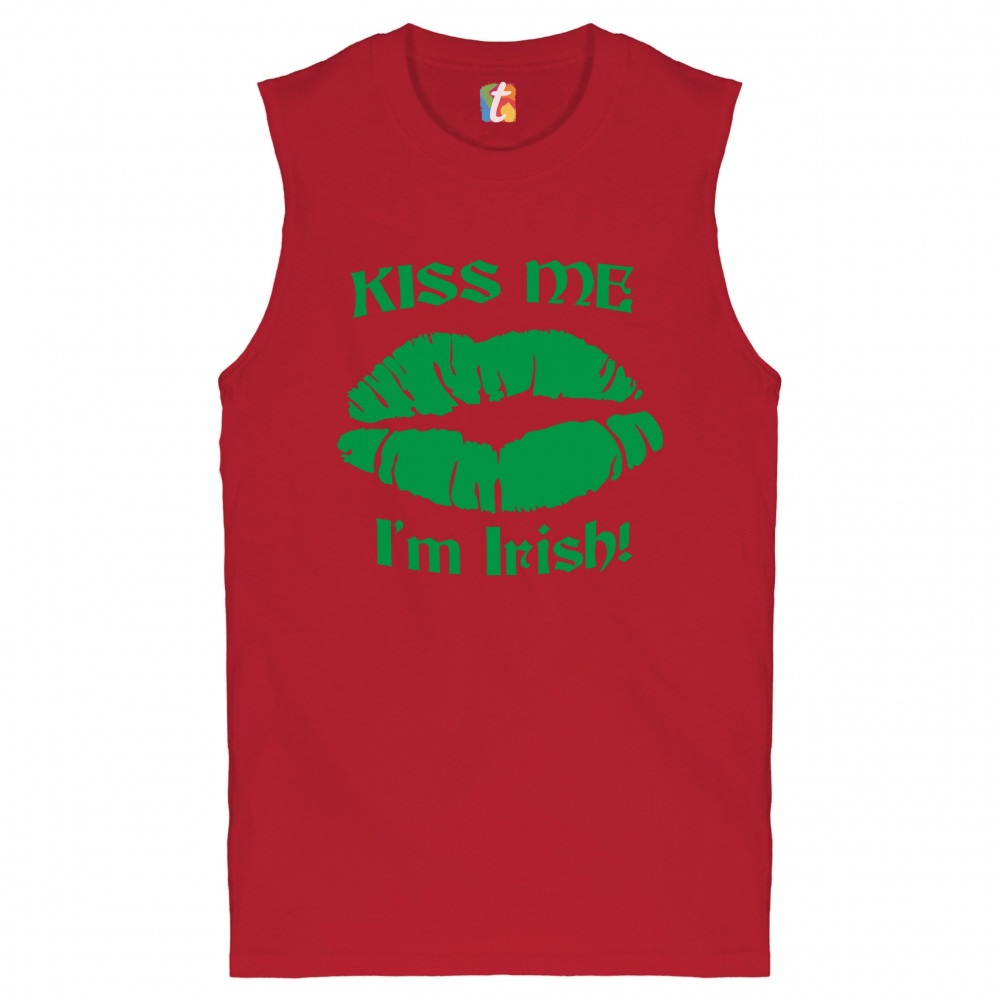 KISS ME I'M IRISH! muscle shirt funny st. patrick's day shenanigans men's red
