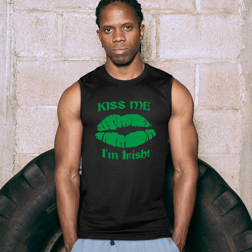 KISS ME I'M IRISH! muscle shirt funny st. patrick's day shenanigans men's black