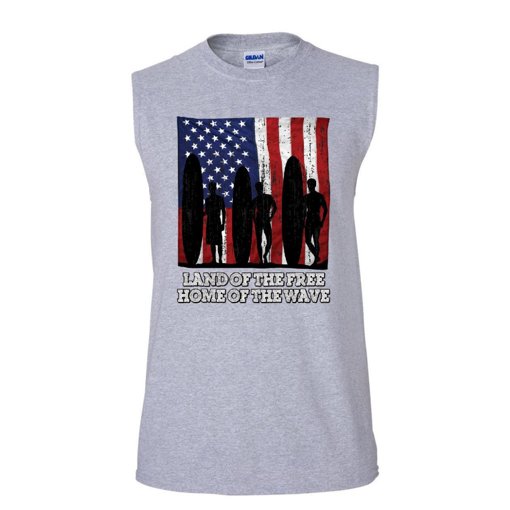 LAND OF THE FREE SURFING muscle shirt home of the wave beach gray