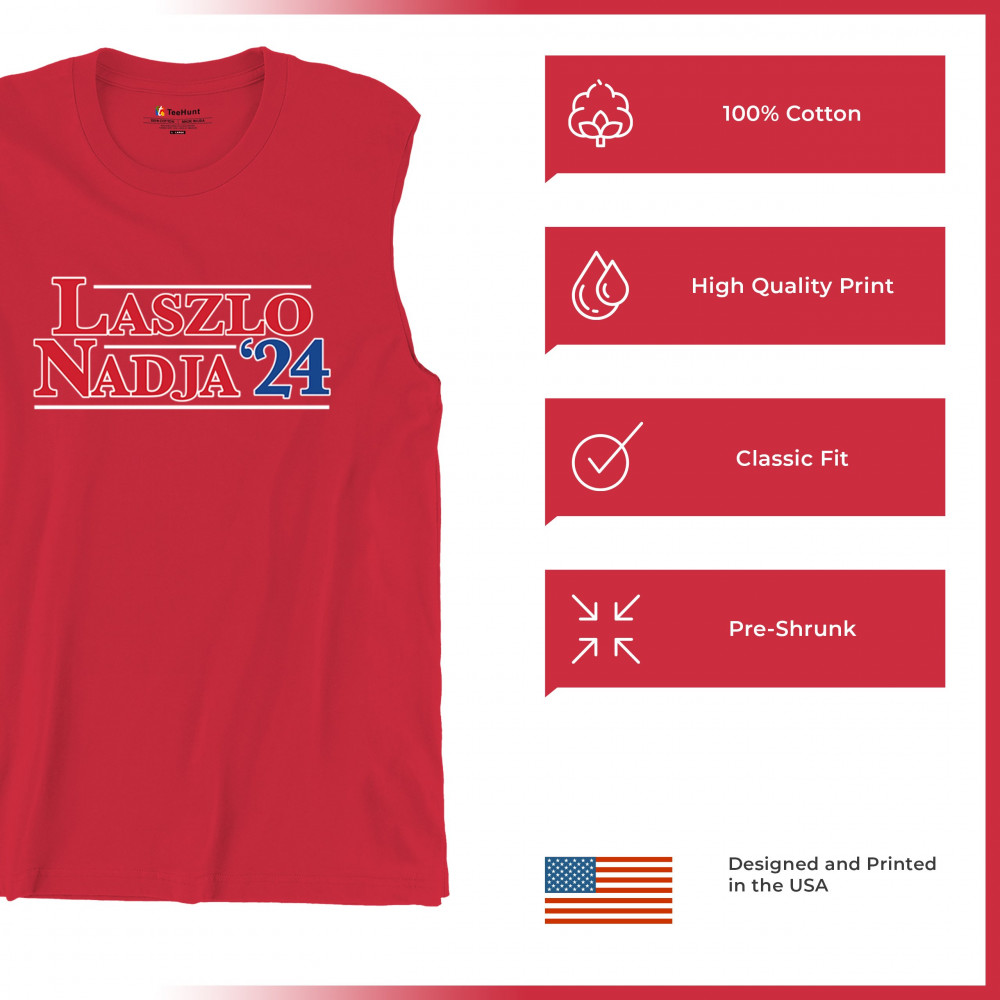 Celebrate humor and pop culture with the Laszlo and Nadja 2024 shirt. Perfect for fans of satire and quirky designs. Comfortable and durable.