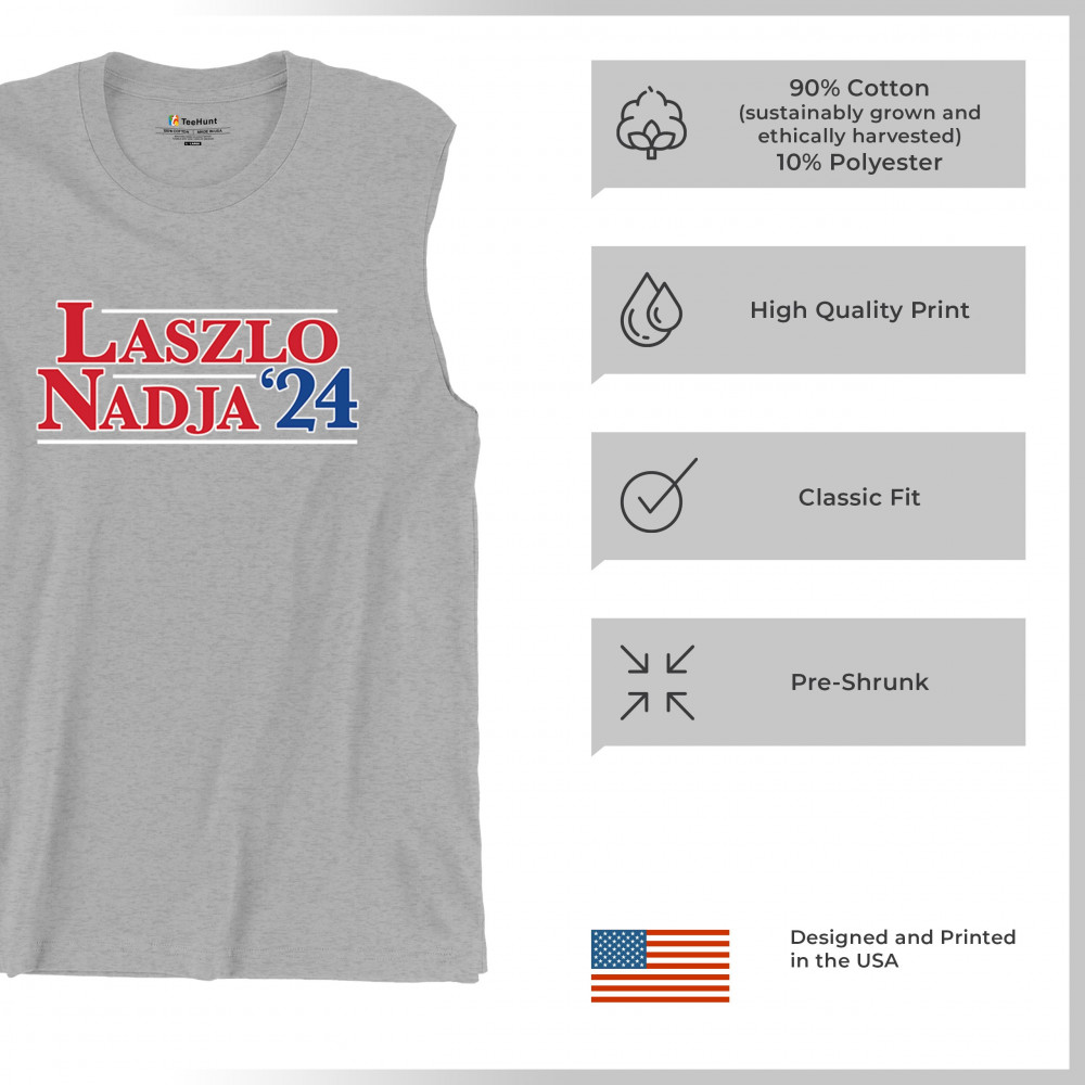 Celebrate humor and pop culture with the Laszlo and Nadja 2024 shirt. Perfect for fans of satire and quirky designs. Comfortable and durable.
