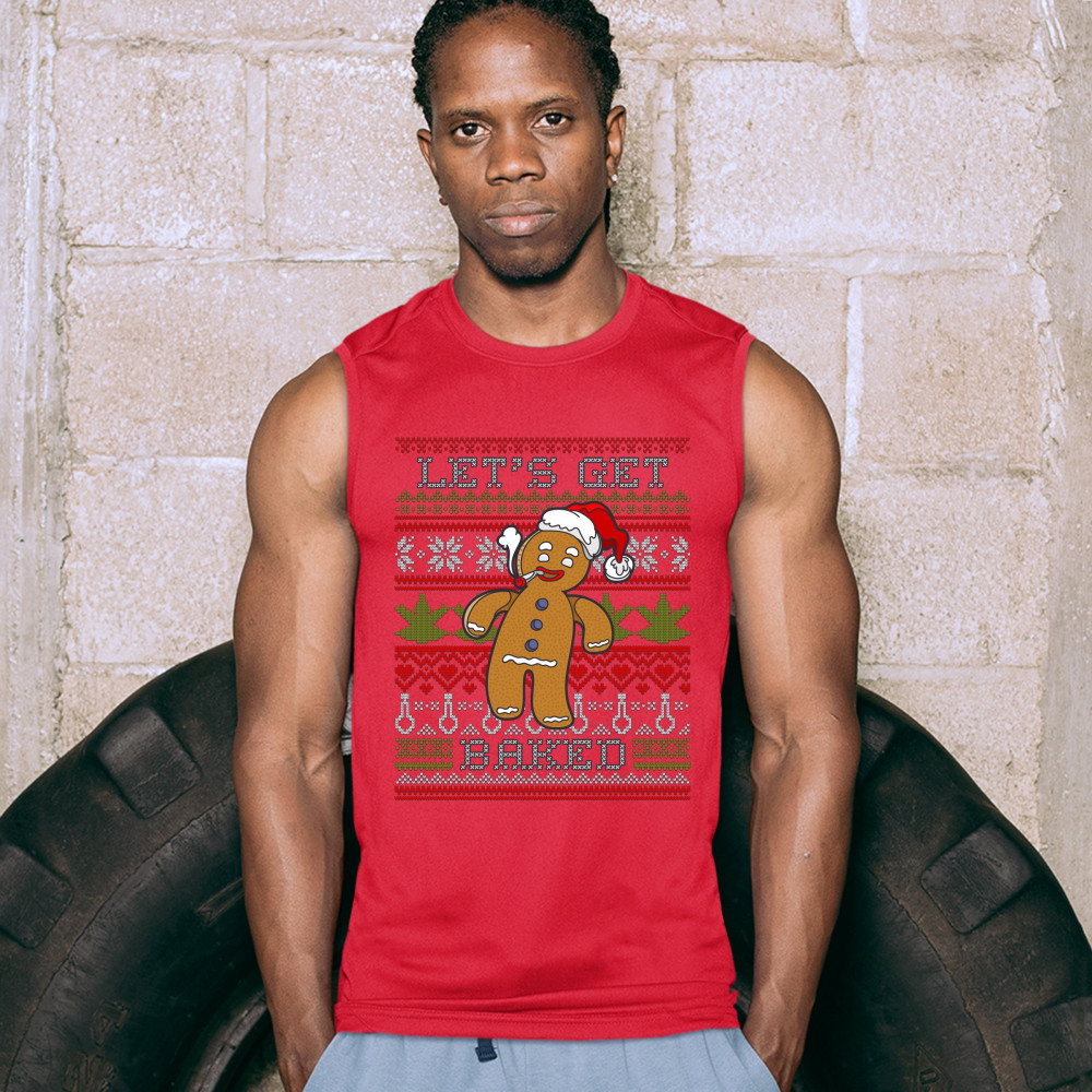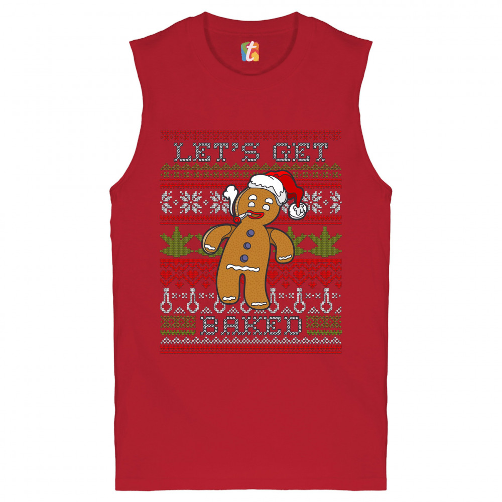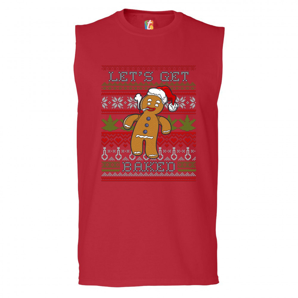 LET'S GET BAKED muscle shirt ugly sweater gingerbread man 420 marijuana men's red