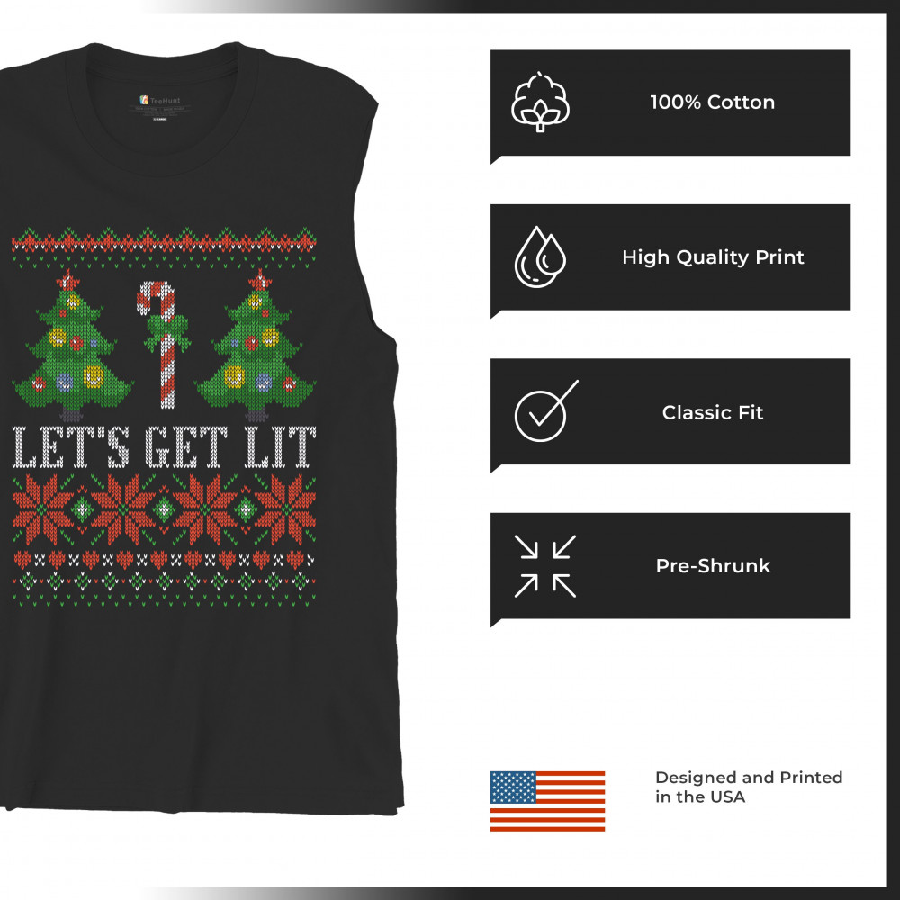 LET'S GET LIT muscle shirt ugly sweater merry christmas candy cane men's black