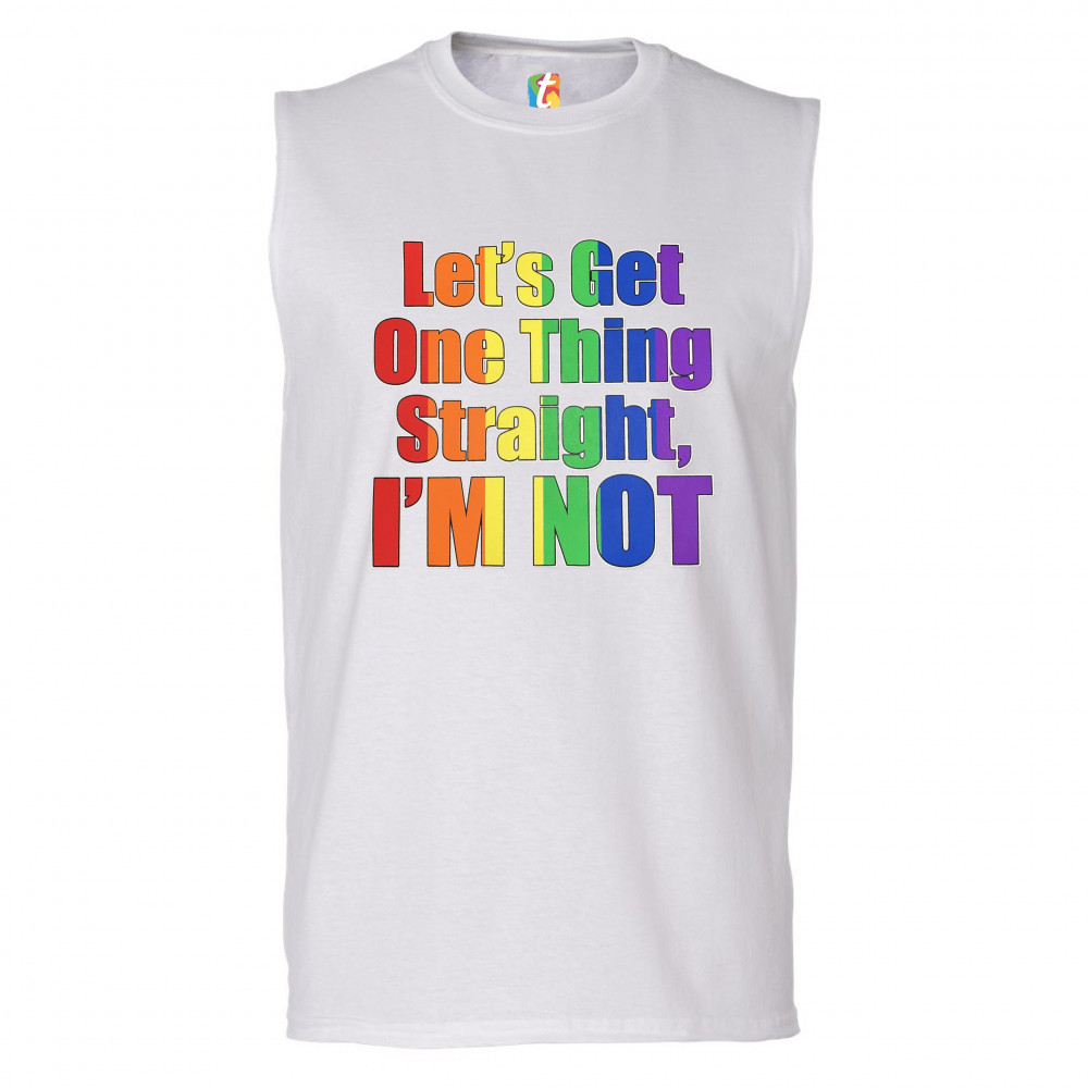 LET'S GET ONE THING STRAIGHT, I'M NOT muscle shirt lgbt gay rainbow men's white