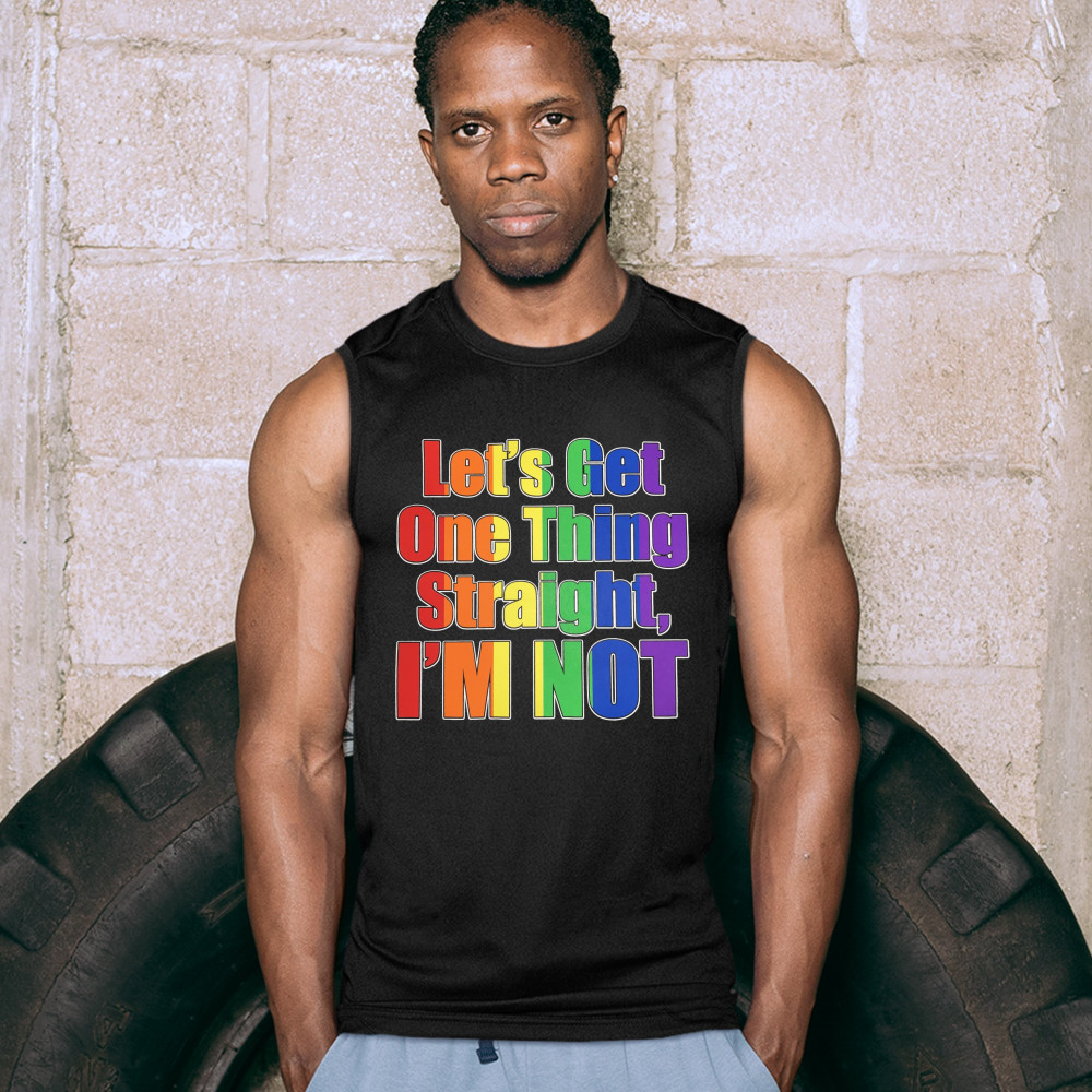 LET'S GET ONE THING STRAIGHT, I'M NOT muscle shirt lgbt gay rainbow men's black