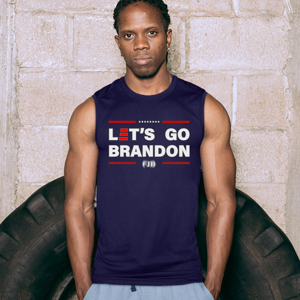 LET'S GO BRANDON FJB muscle shirt anti joe biden funny political men's navy blue