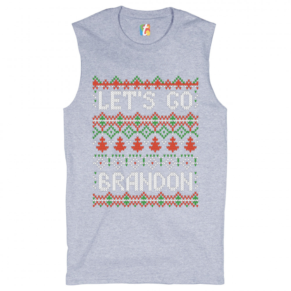 LET'S GO BRANDON muscle shirt ugly sweater christmas funny anti biden men's gray
