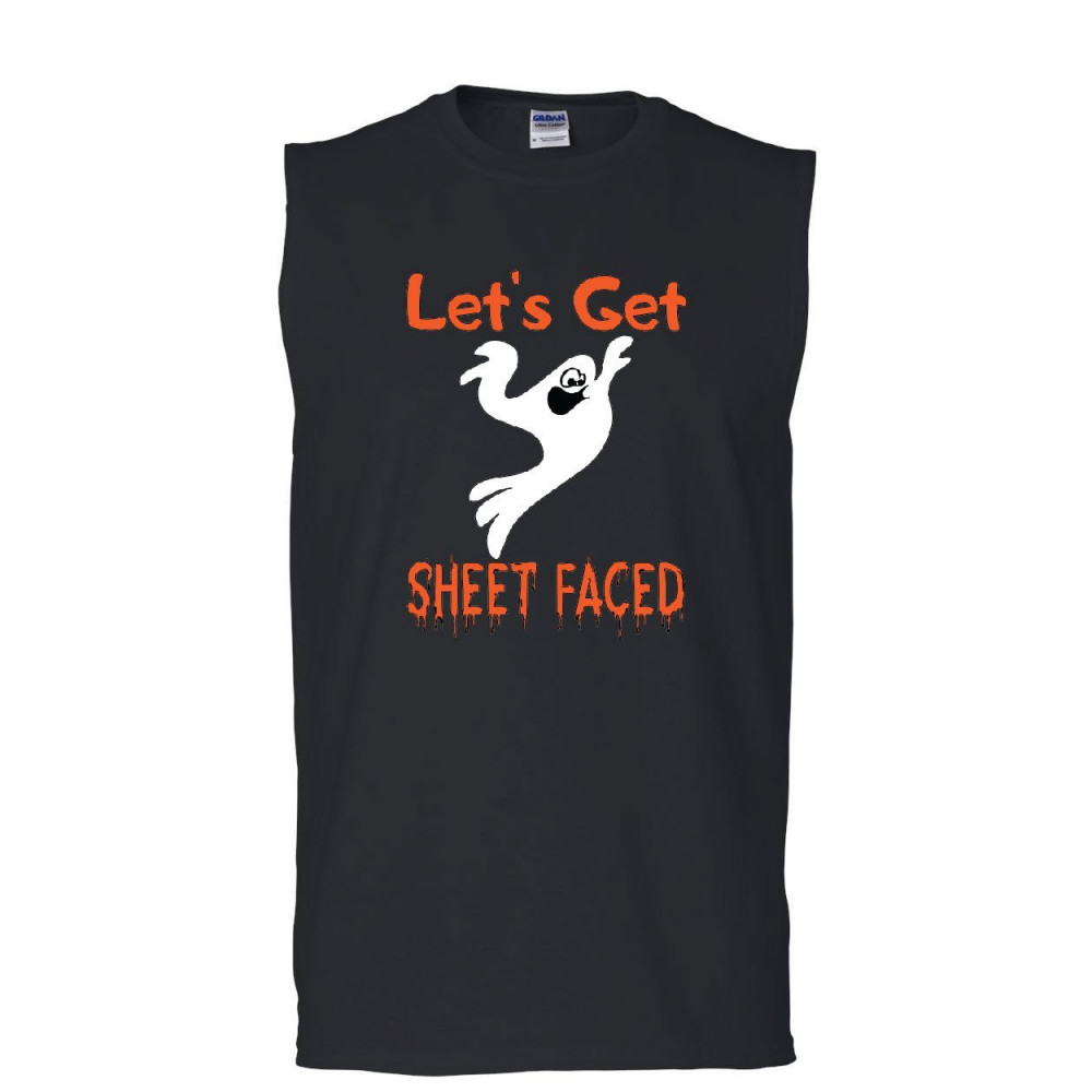 LET'S GET SHEET FACED muscle shirt funny drinking ghost halloween boo sleeveless black