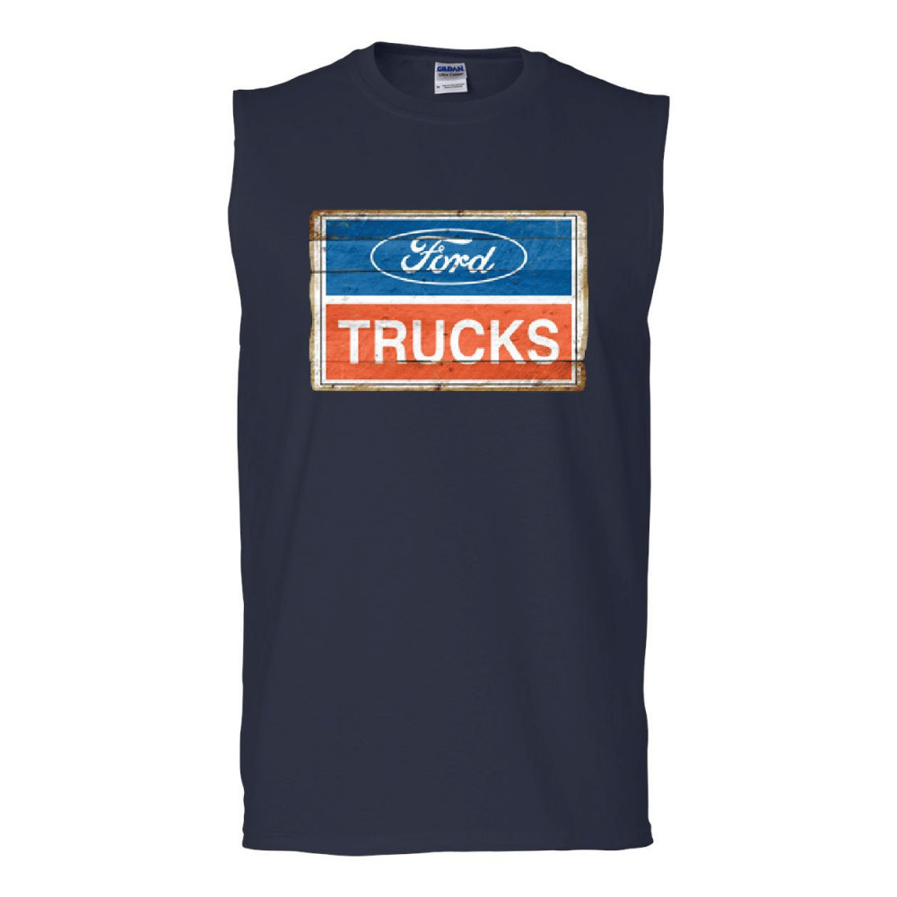 FORD TRUCKS OLD SIGN muscle shirt licensed ford built tough navy blue