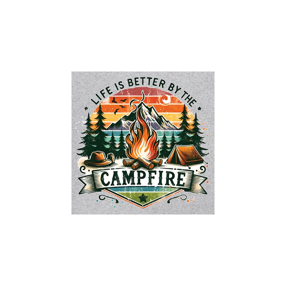 Life is Better by the Campfire brings rustic charm and outdoor adventure together with a glowing fire, mountain scenery, and pine forest. Ideal for forest lovers, campers, and national park explorers, this design evokes wilderness vibes, tent life, and the thrill of travel. Great value for anyone who believes adventure begins under the stars.