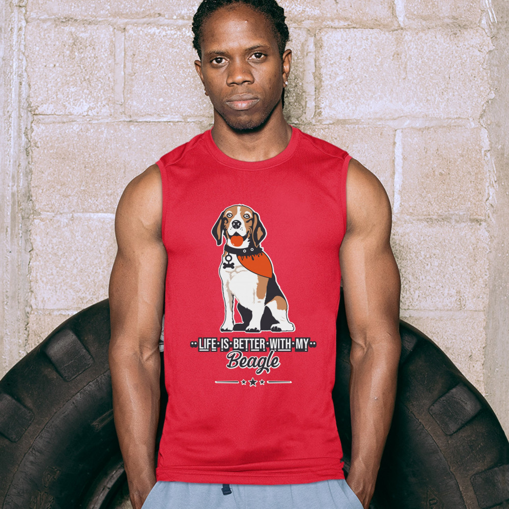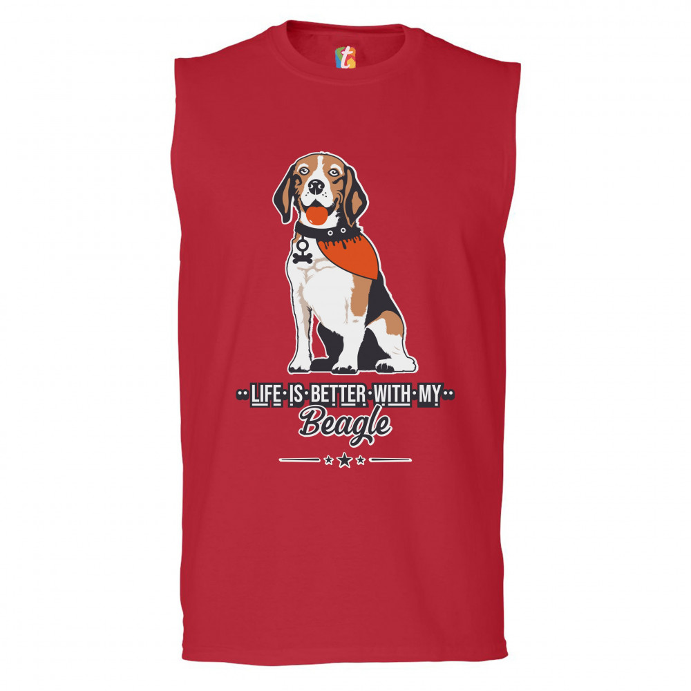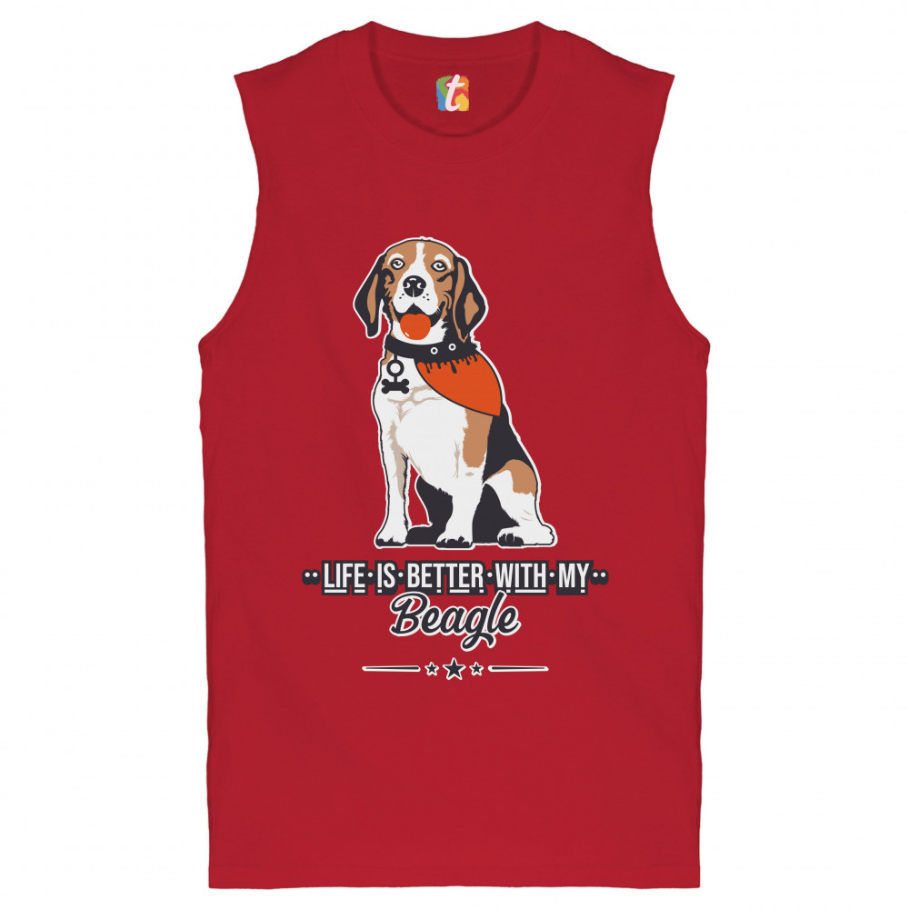 LIFE IS BETTER WITH MY BEAGLE muscle shirt i love my dog best friend men's red