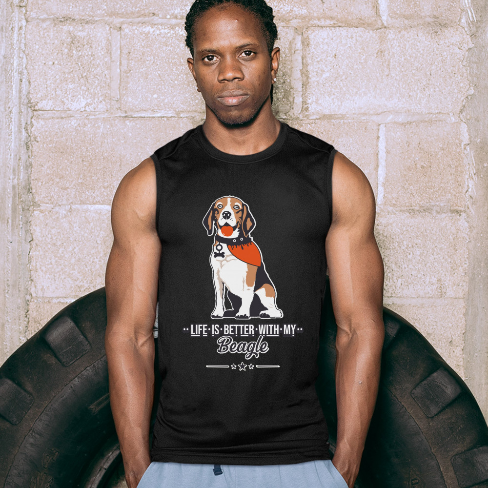 LIFE IS BETTER WITH MY BEAGLE muscle shirt i love my dog best friend men's black