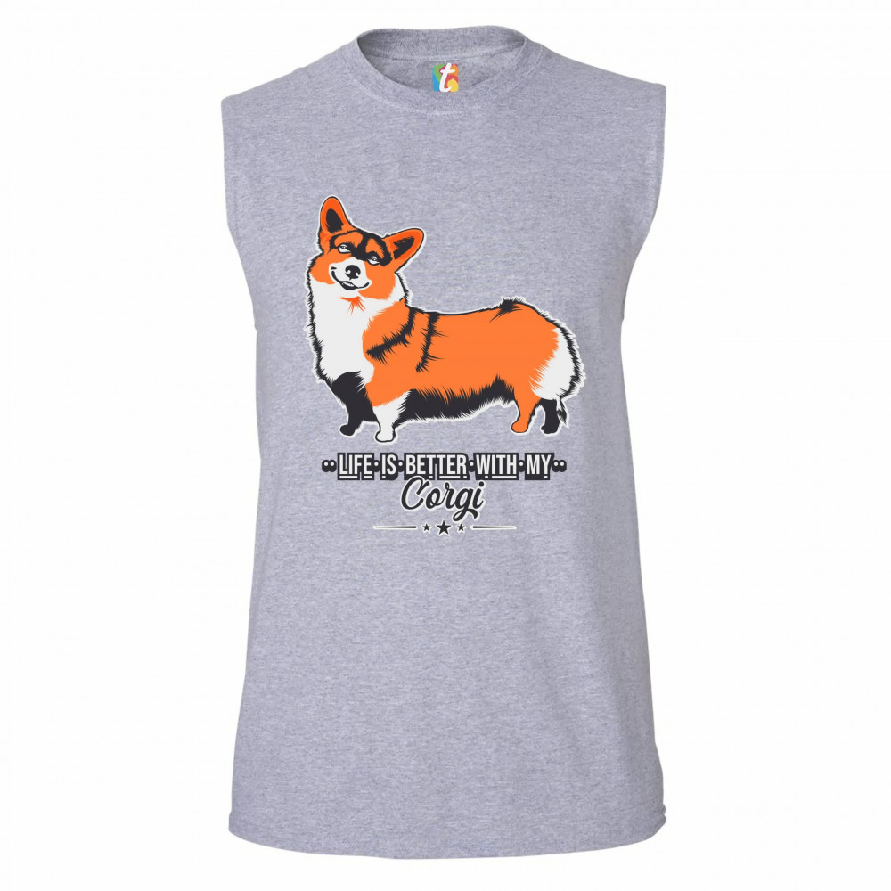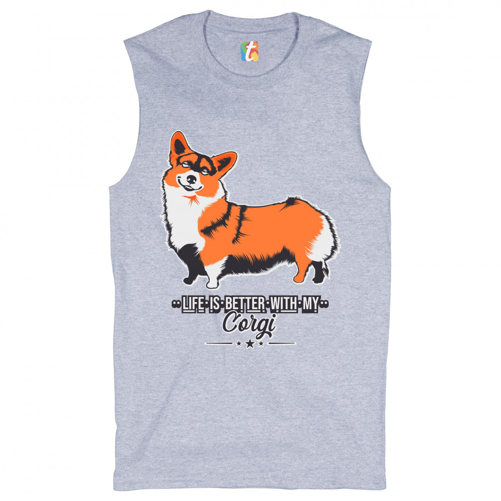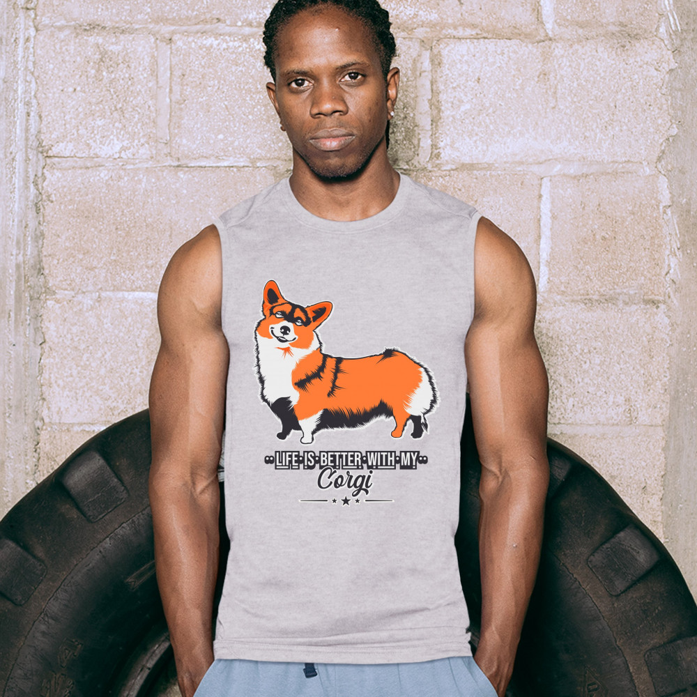 LIFE IS BETTER WITH MY CORGI muscle shirt pet best friend dog lover men's gray