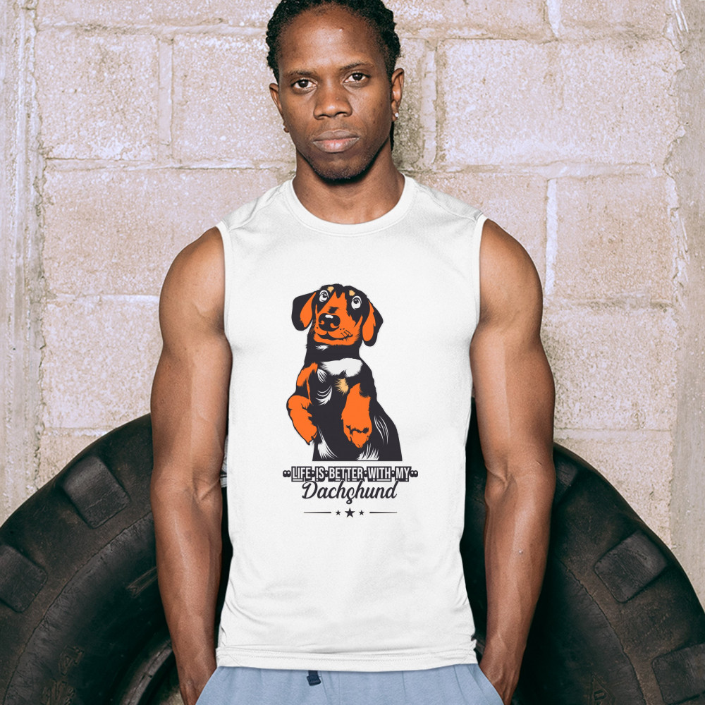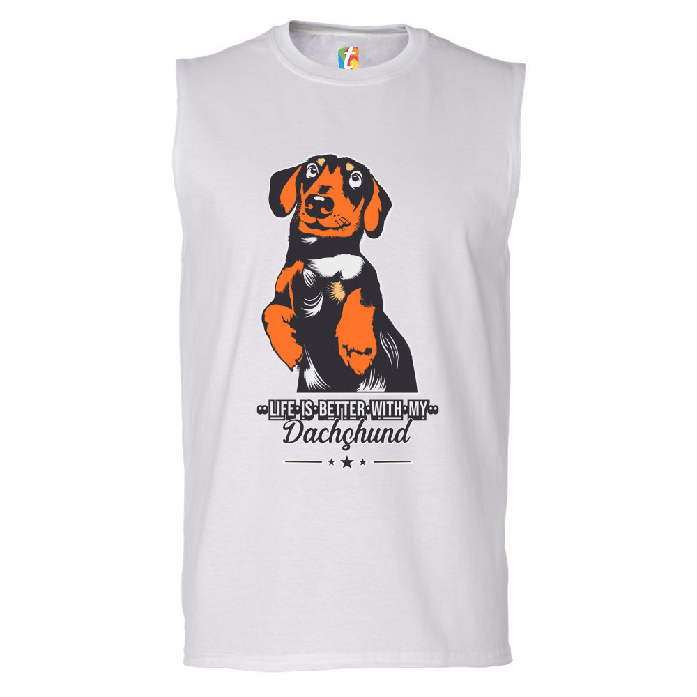 LIFE IS BETTER WITH MY DACHSUND muscle shirt pet lover i love my dog men's white