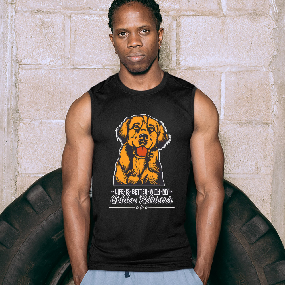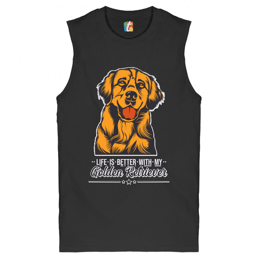 LIFE IS BETTER WITH MY GOLDEN RETRIEVER muscle shirt puppy dog owner men's black