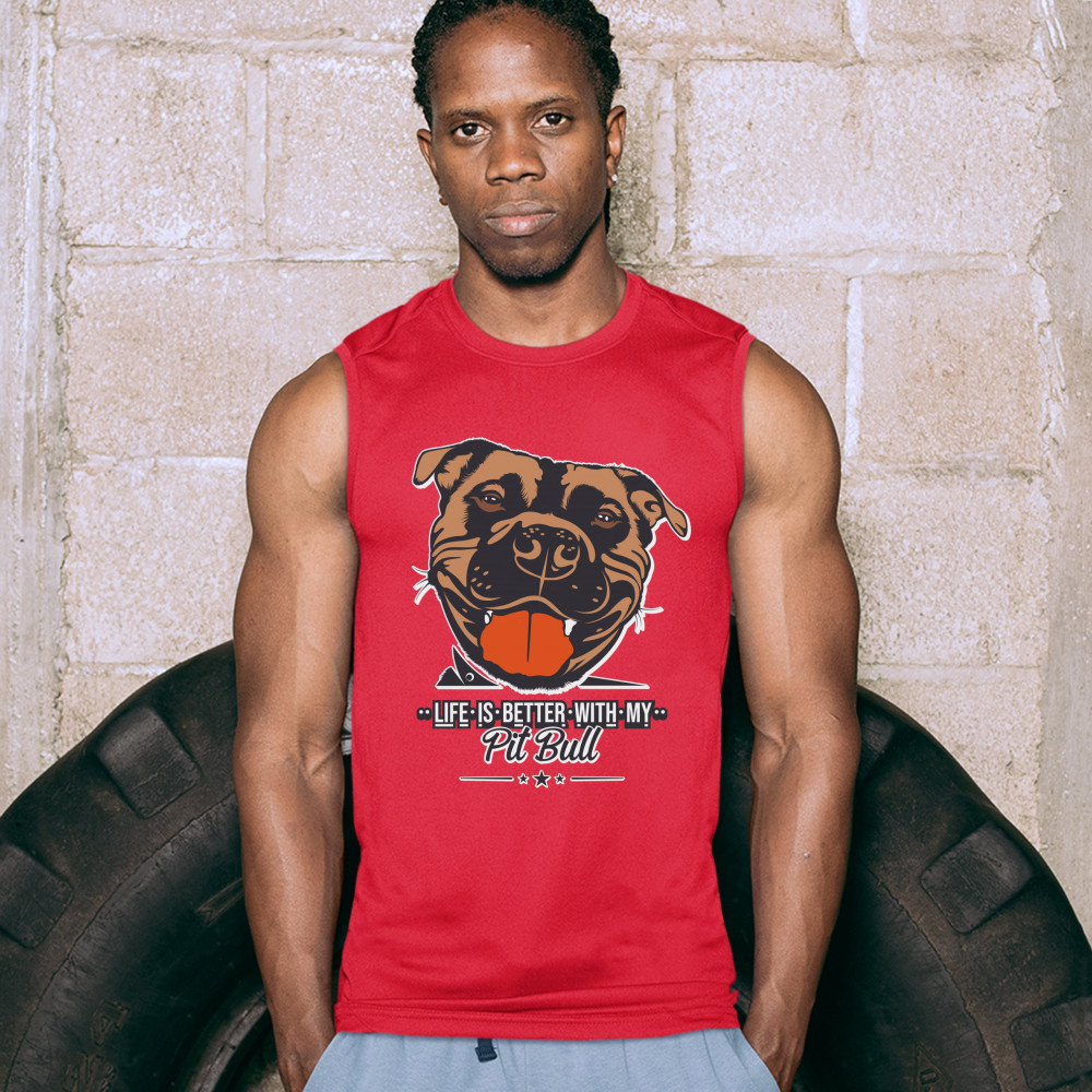 LIFE IS BETTER WITH MY PIT BULL muscle shirt i love me dog animal lover men's red