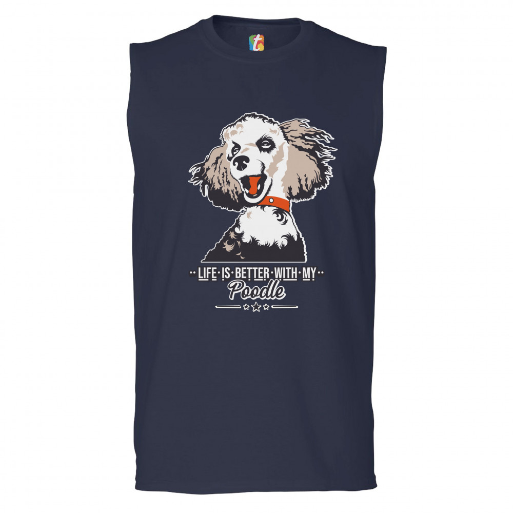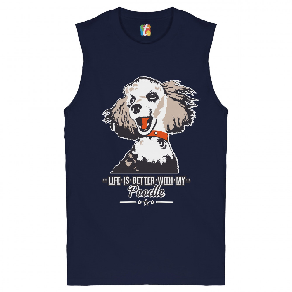 LIFE IS BETTER WITH MY POODLE muscle shirt cute puppy dog lover pet men's navy blue
