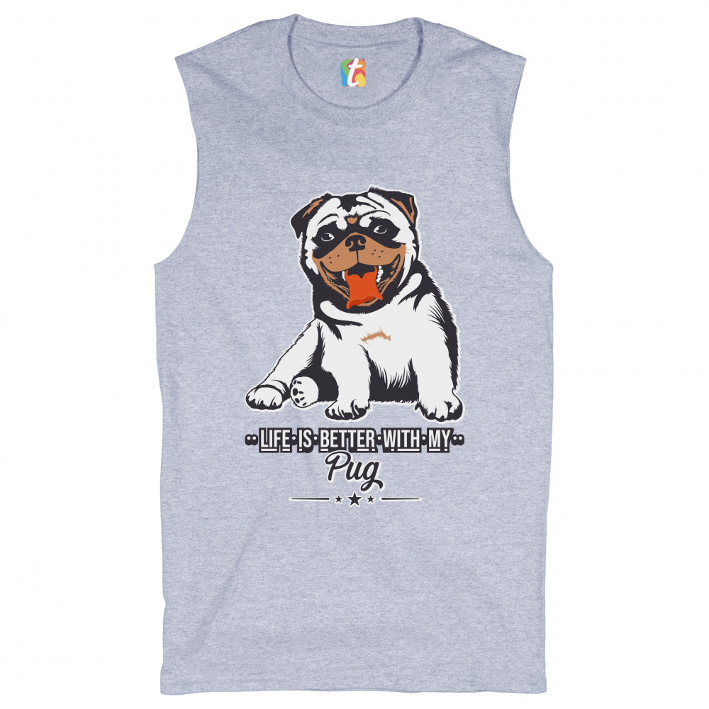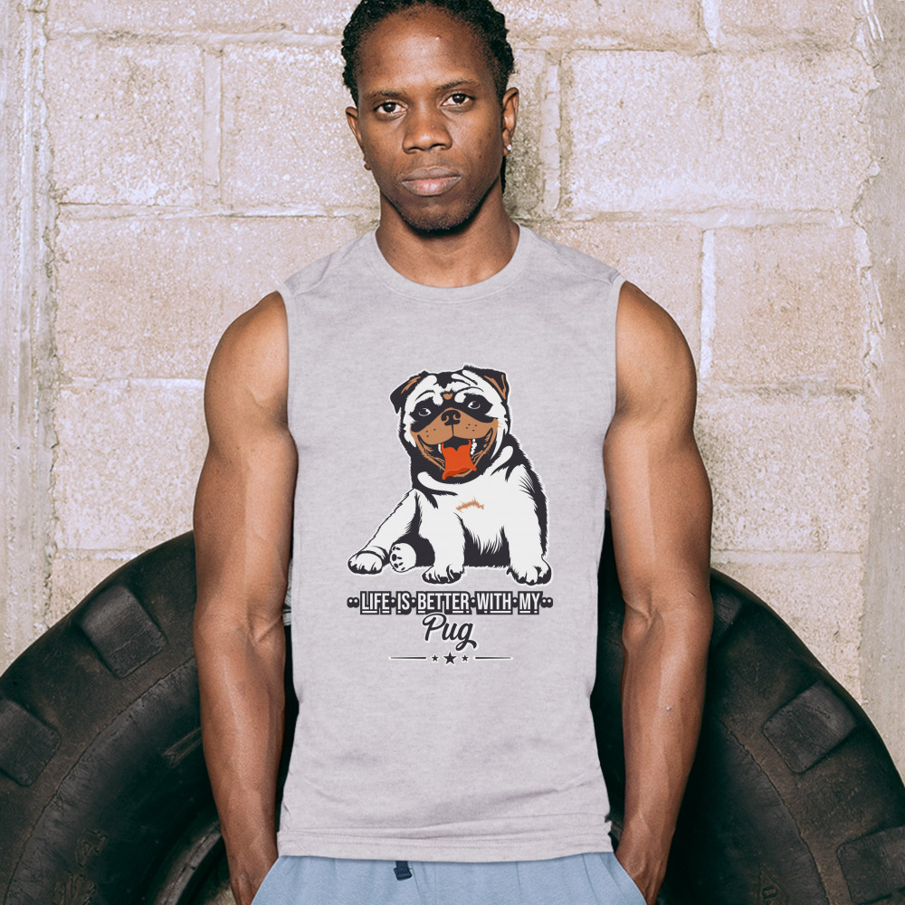 LIFE IS BETTER WITH MY PUG muscle shirt cute pet adorable dog breed men's gray