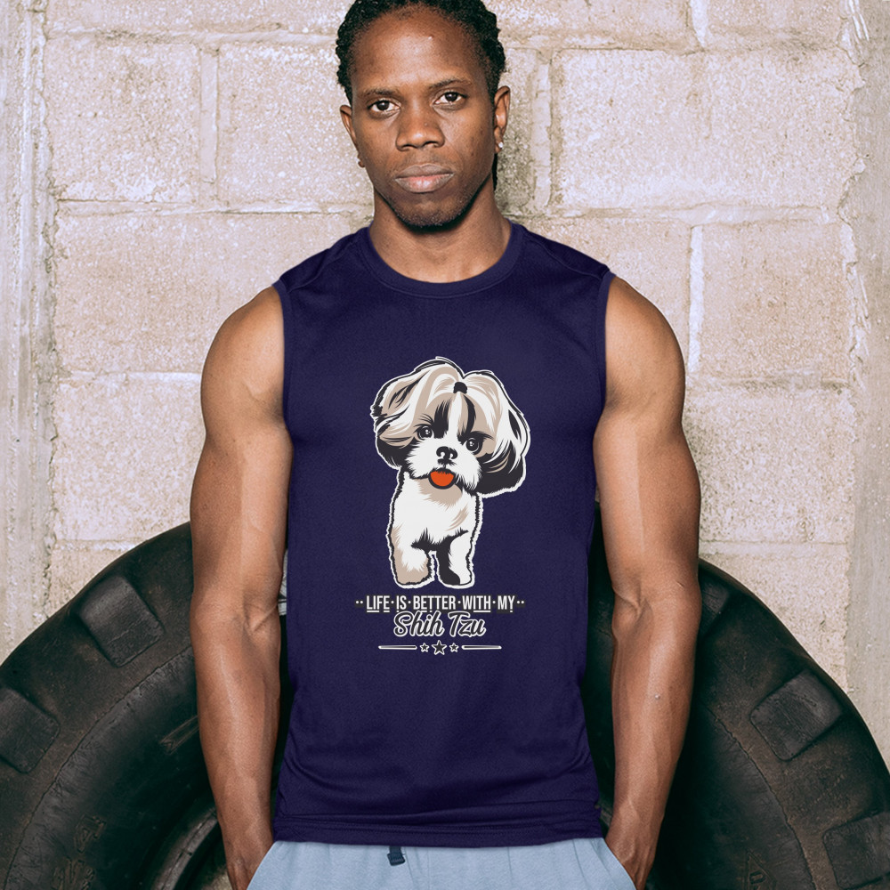 LIFE IS BETTER WITH MY SHIH TZU muscle shirt small dog lover toy dog men's navy blue