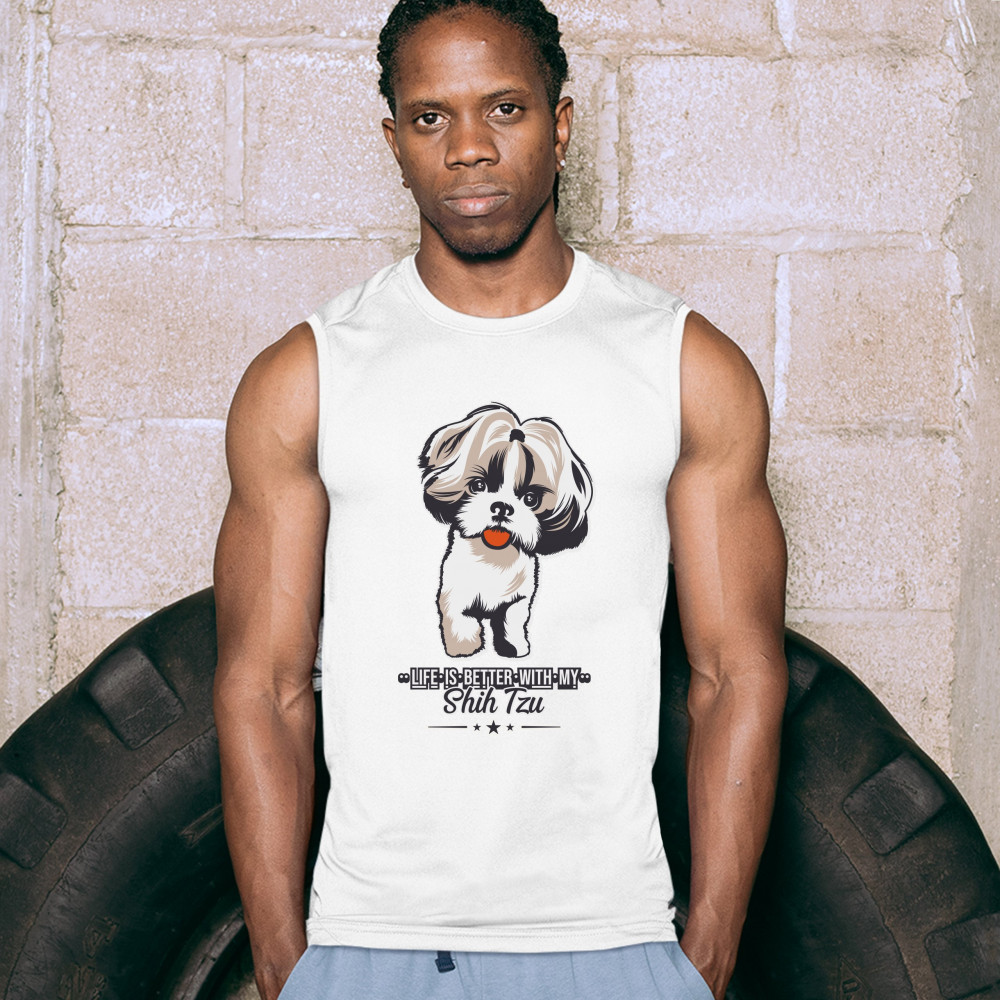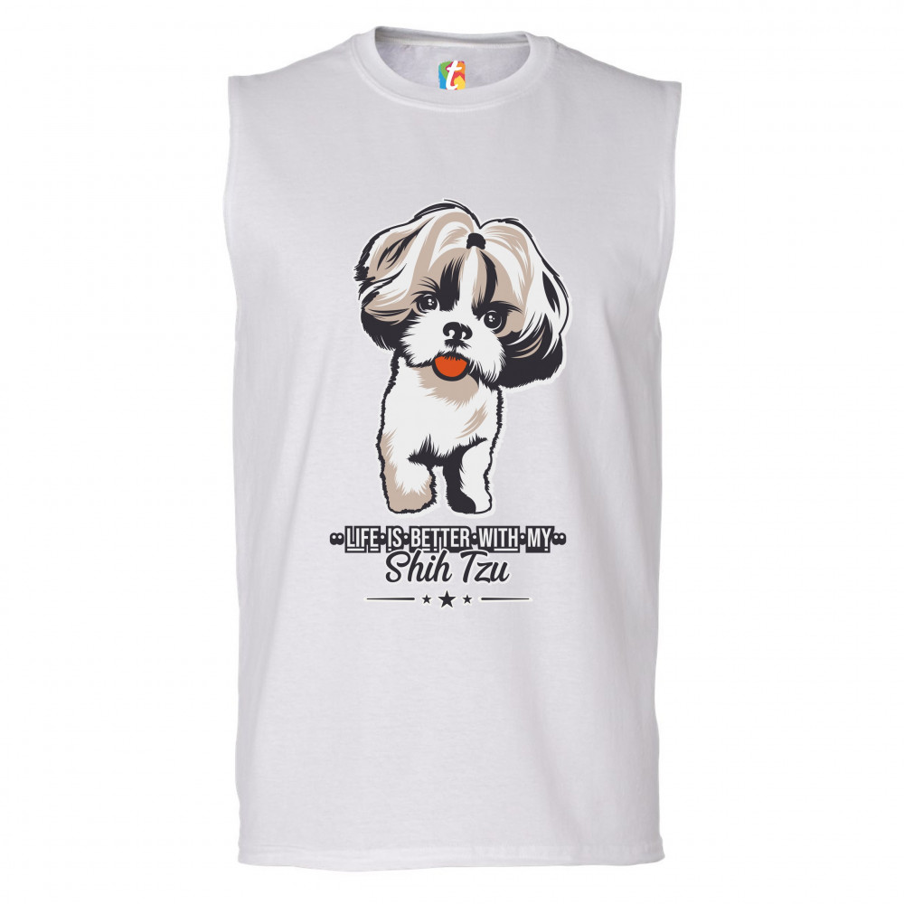 LIFE IS BETTER WITH MY SHIH TZU muscle shirt small dog lover toy dog men's white