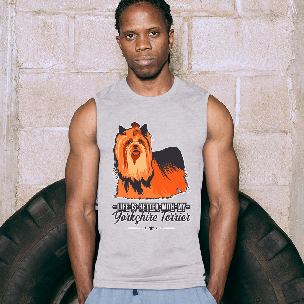 LIFE IS BETTER WITH MY YORKSHIRE TERRIER muscle shirt yorkie toy dog men's gray