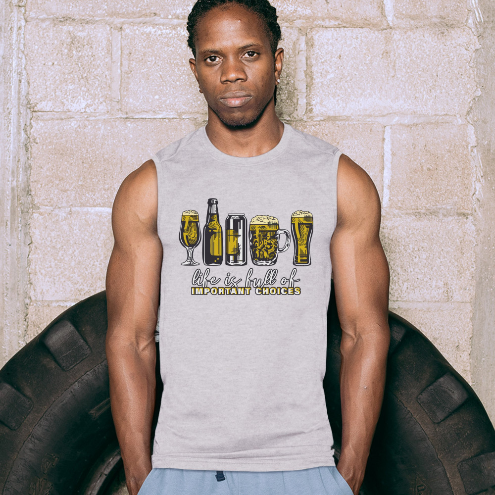 LIFE IS FULL OF IMPORTANT CHOICES muscle shirt funny beer drinking ipa men's gray