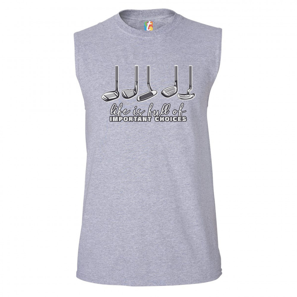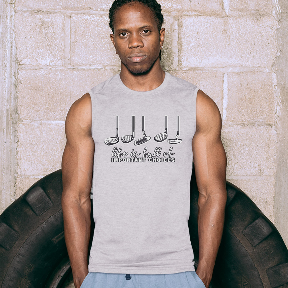 LIFE IS FULL OF IMPORTANT CHOICES muscle shirt funny golf clubs golfing men's gray