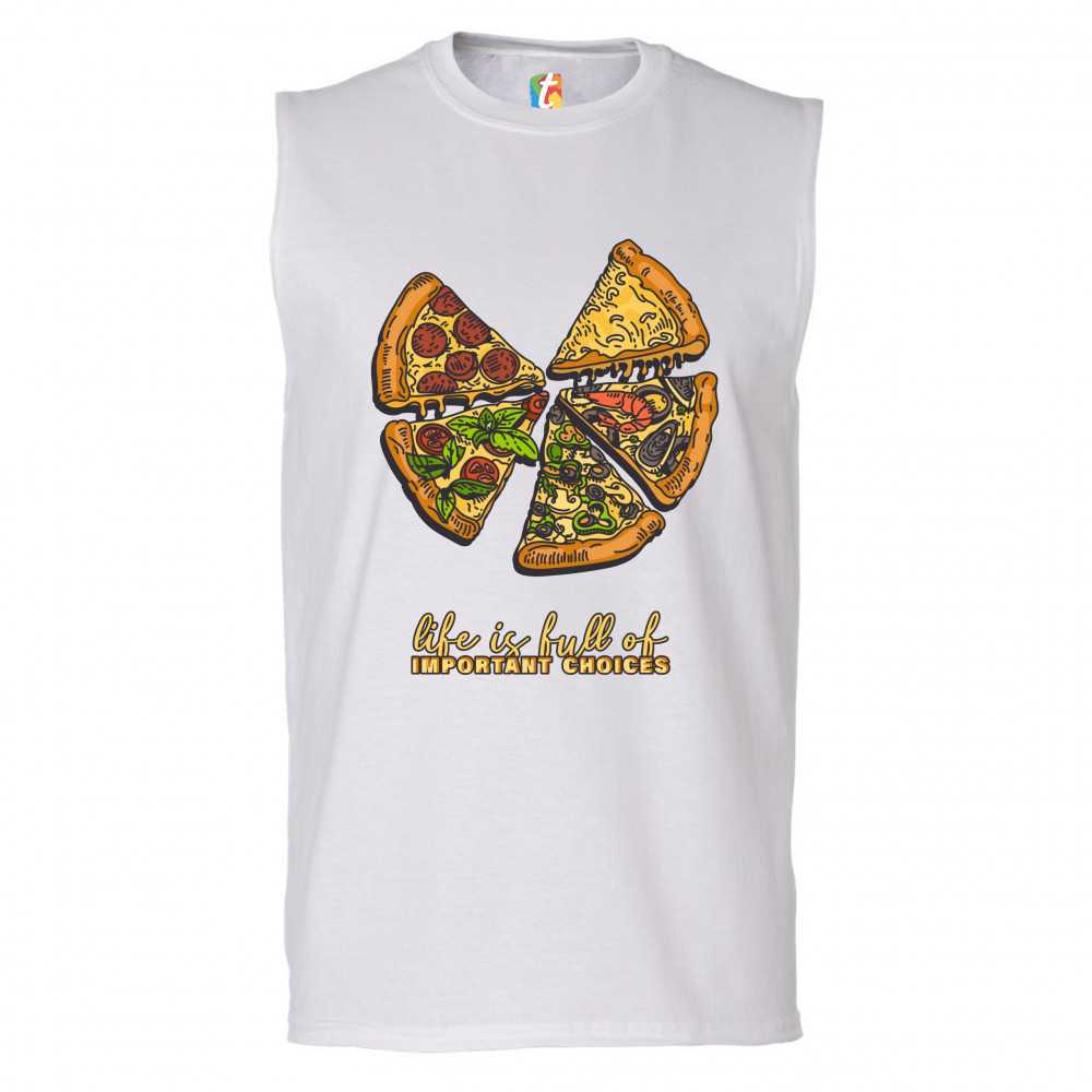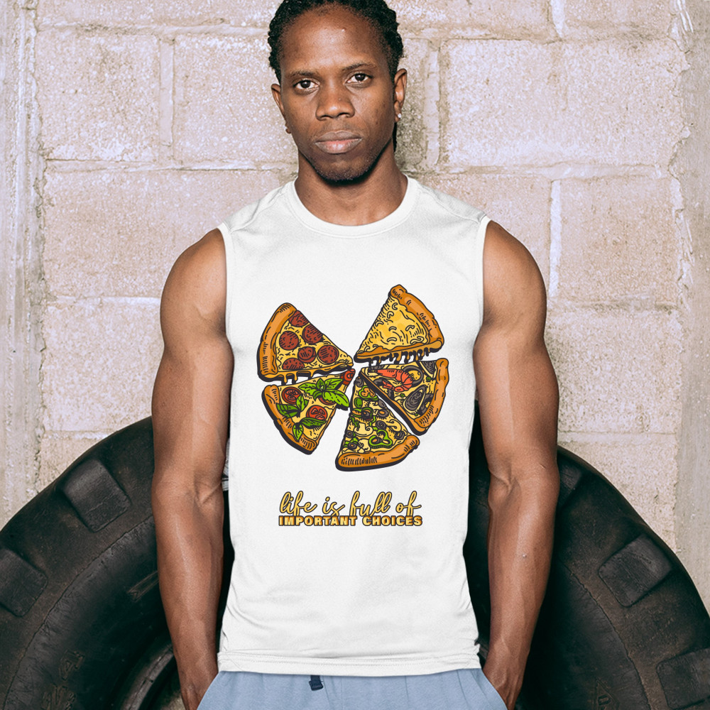 LIFE IS FULL OF IMPORTANT CHOICES muscle shirt funny pepperoni pizza men's white