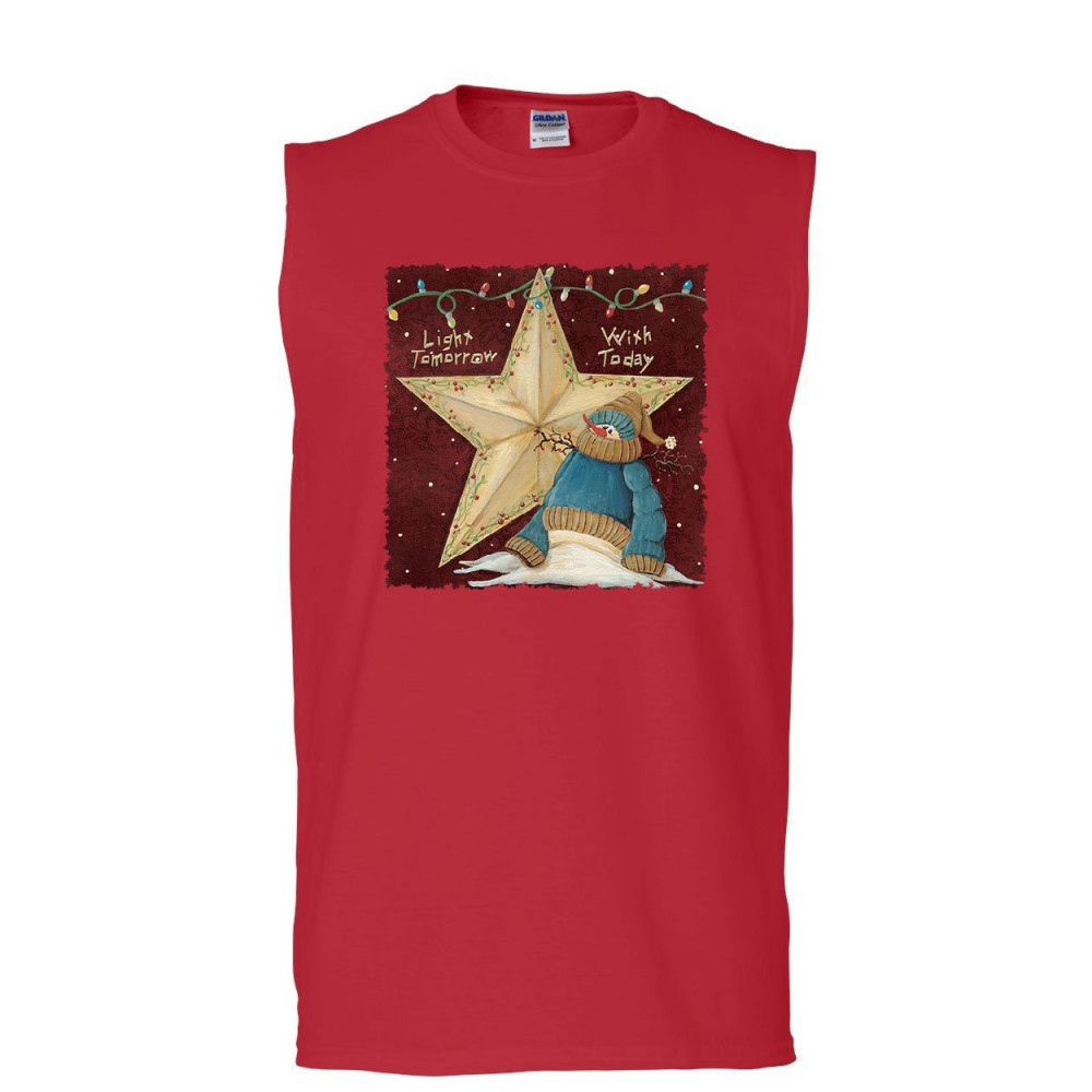 LIGHT TOMORROW WITH TODAY muscle shirt cute christmas snowman holiday sleeveless red