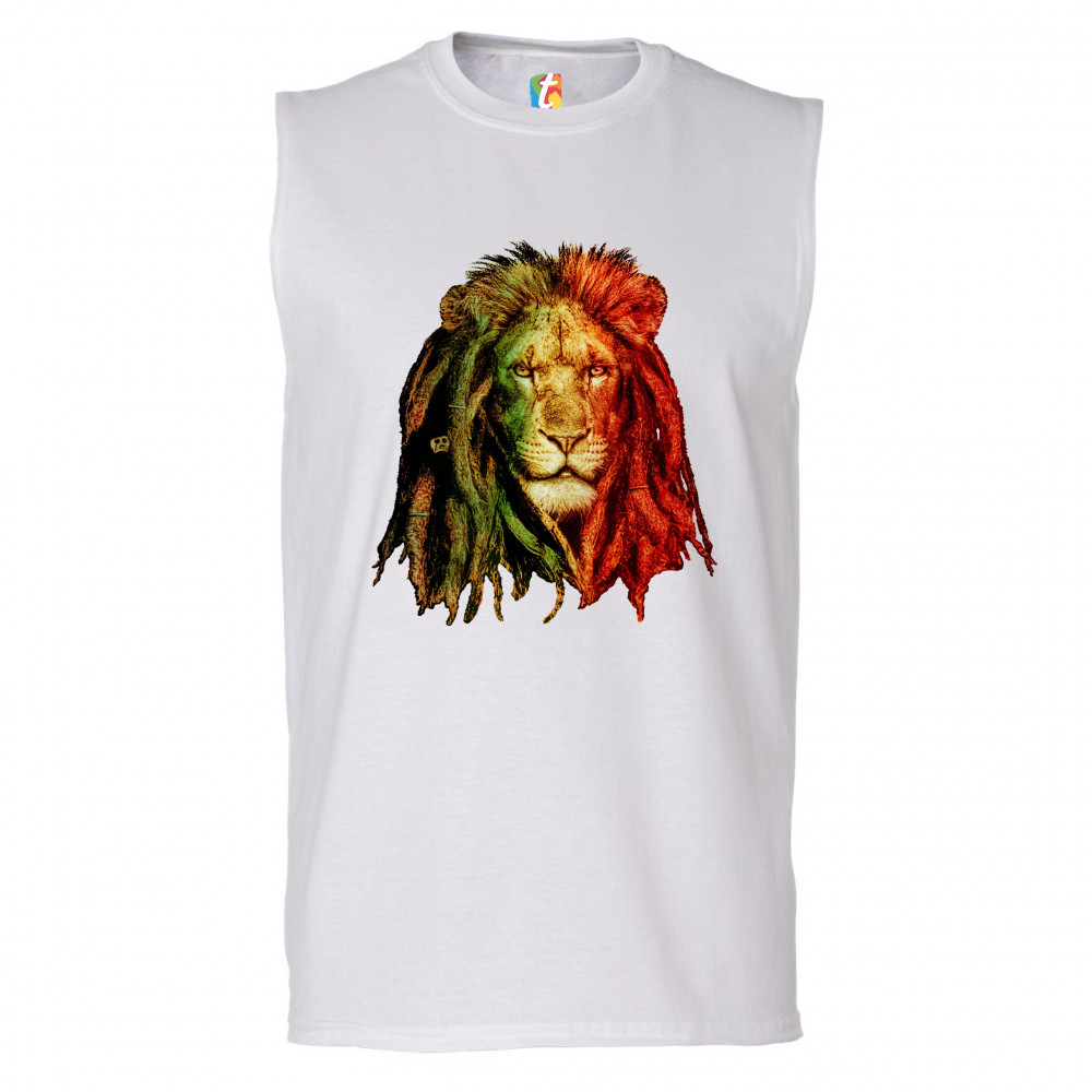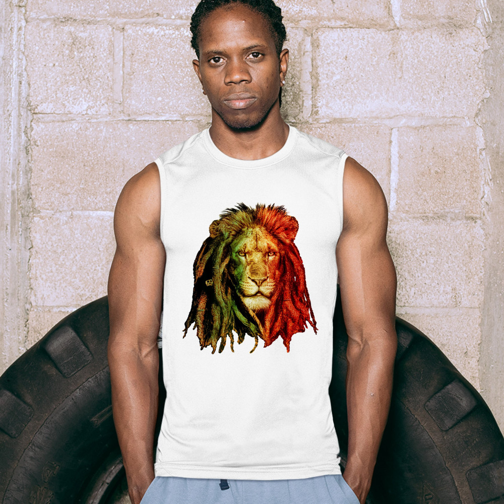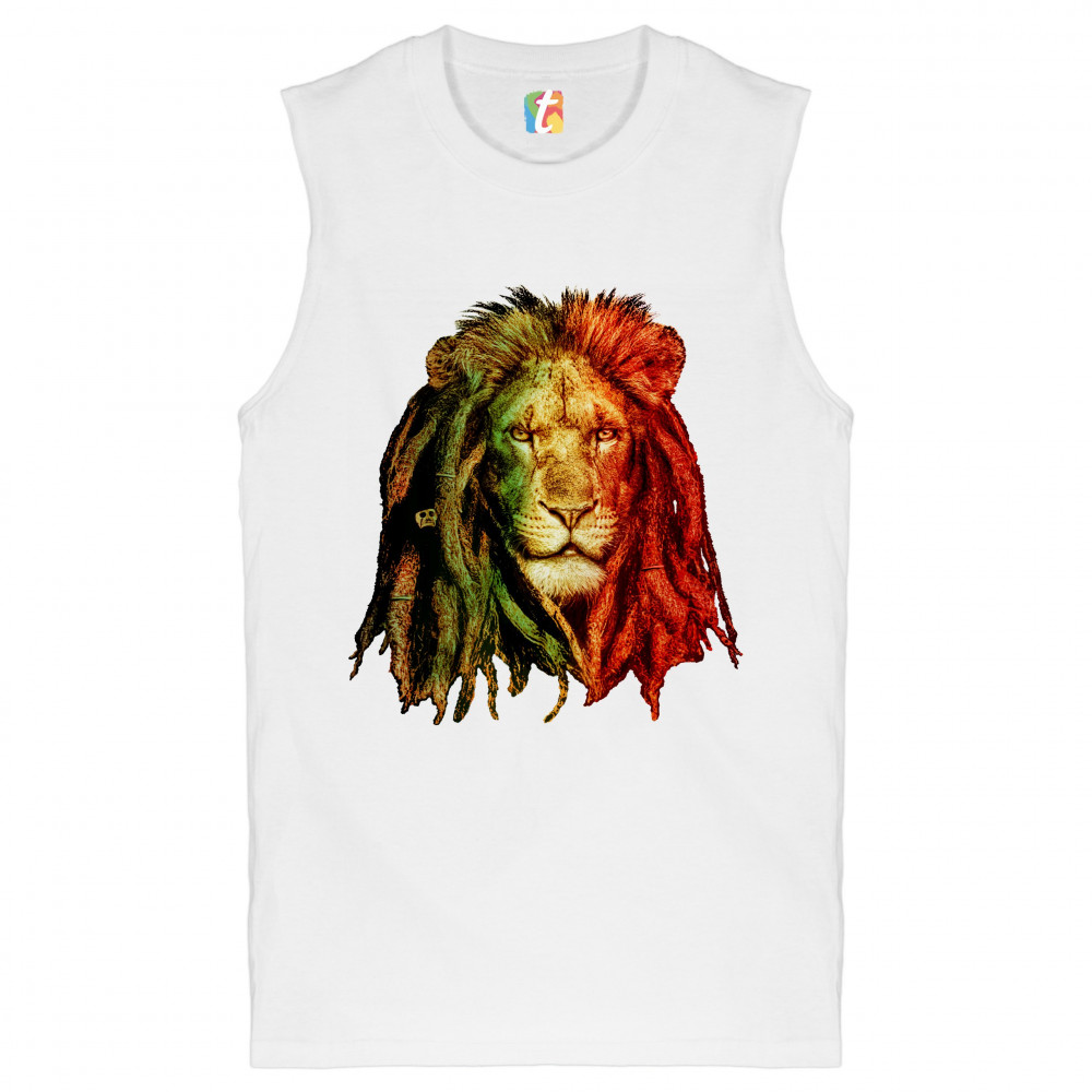LION WITH DREADLOCKS muscle shirt rastafari jah jamaica marijuana 420 men's white