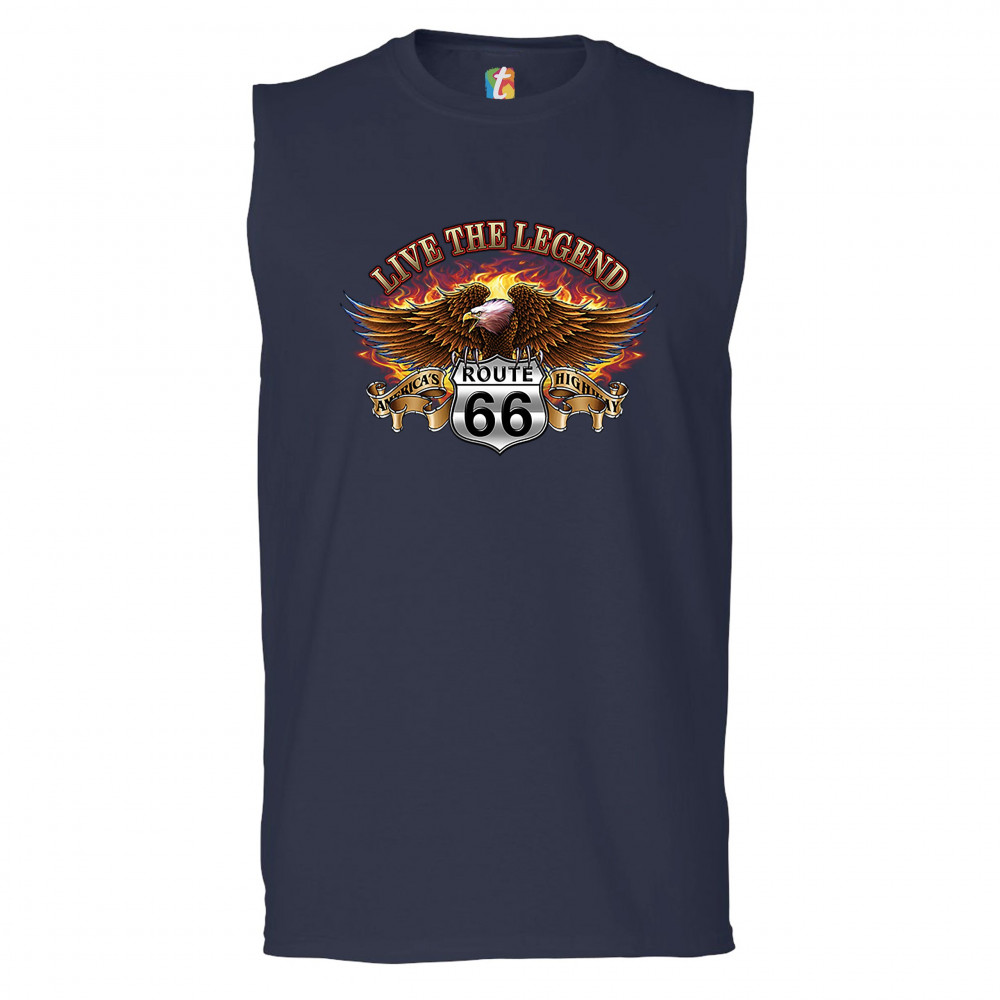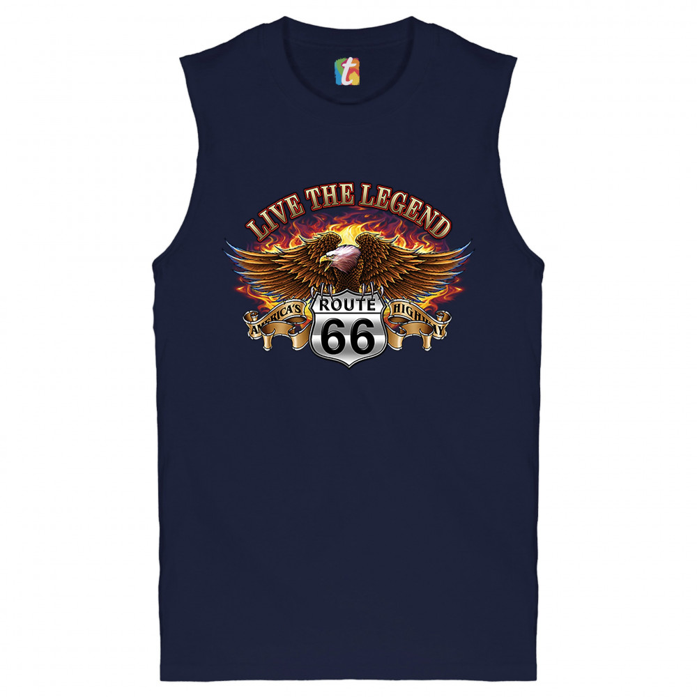 LIVE THE LEGEND AMERICA'S HIGHWAYS muscle shirt route 66 bald eagle men's navy blue