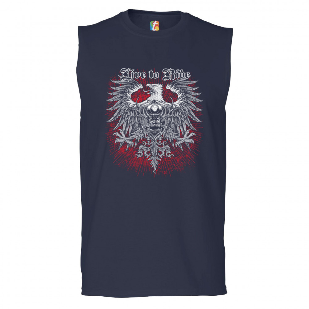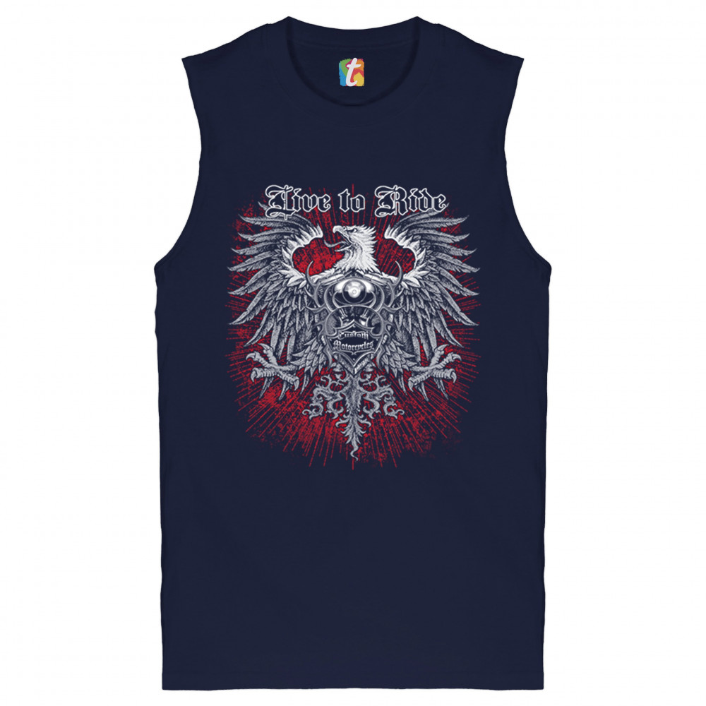 LIVE TO RIDE muscle shirt custom motorcycles mc biker gang rider eagle men's navy blue