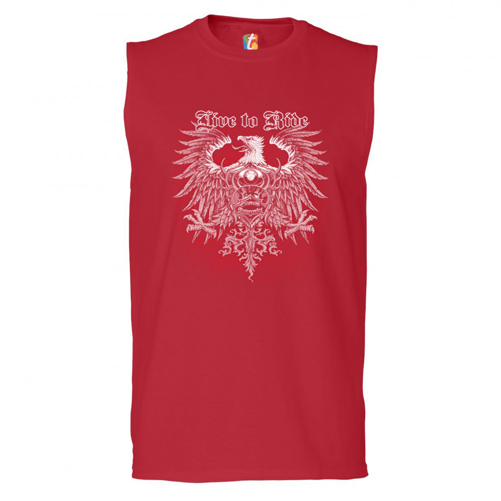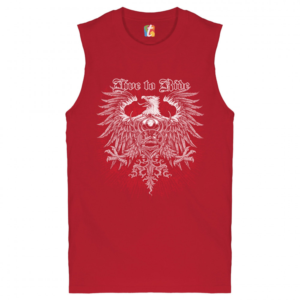 LIVE TO RIDE muscle shirt custom motorcycles mc biker gang rider eagle men's red