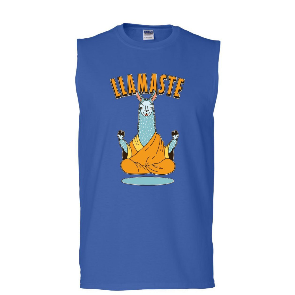LLAMASTE muscle shirt funny yoga namaste llama peace pilates lotus om sleeveless blue