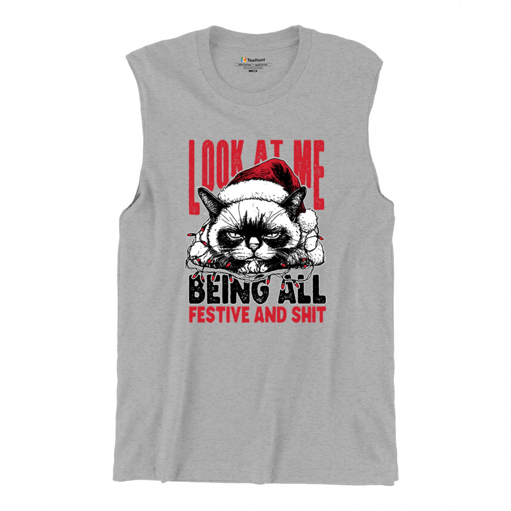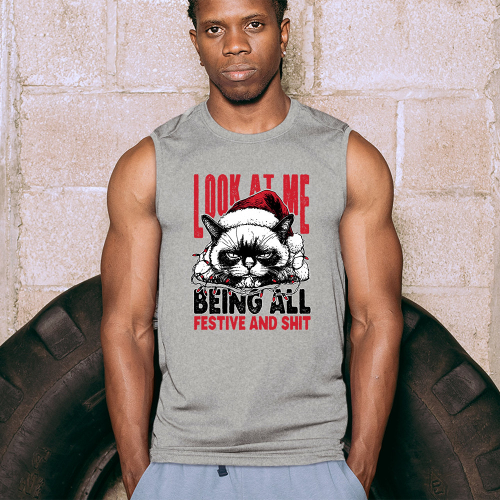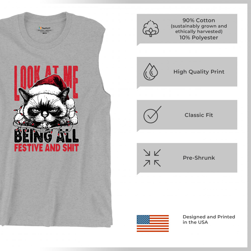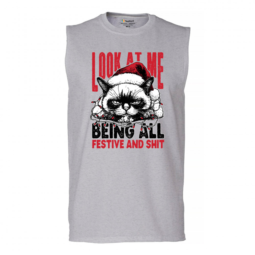 Grumpy Cat Christmas design with Santa hat, Christmas tree humor, Let It Snow vibes, Jingle Bells style, and sarcastic Merry Xmas spirit.