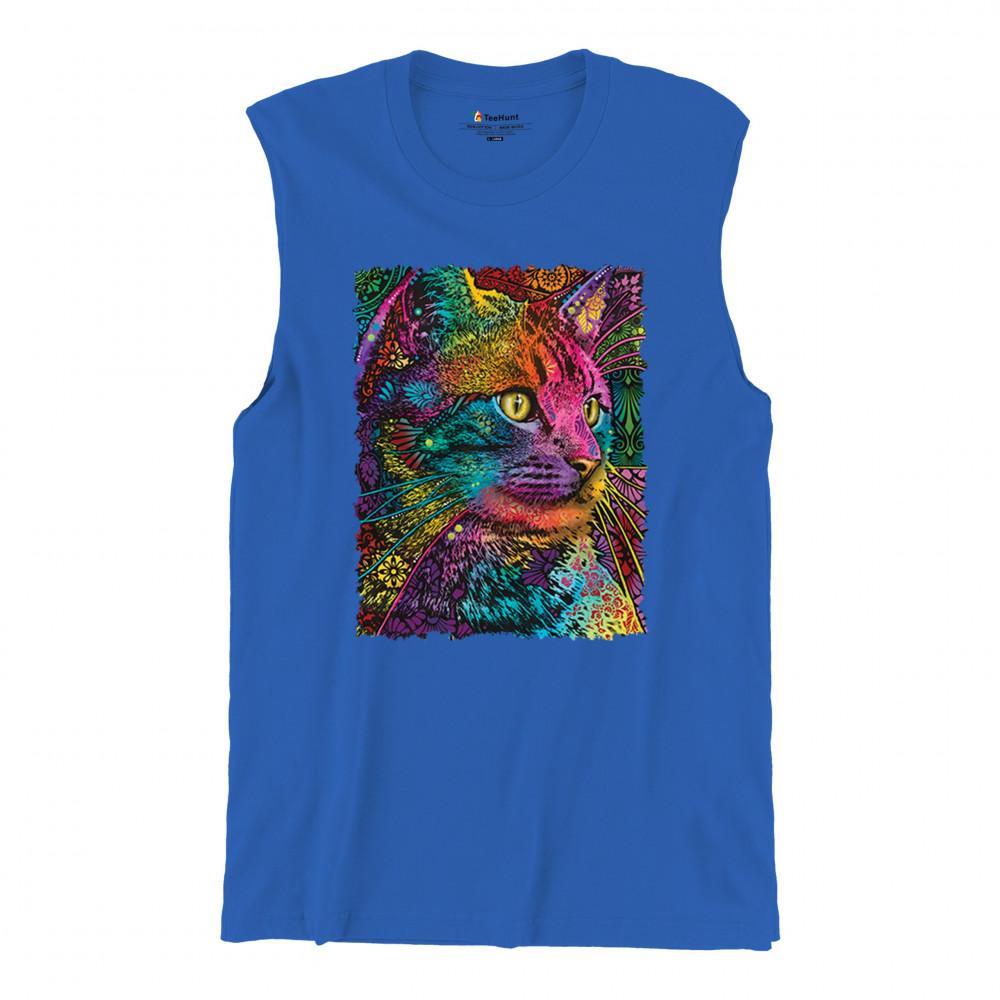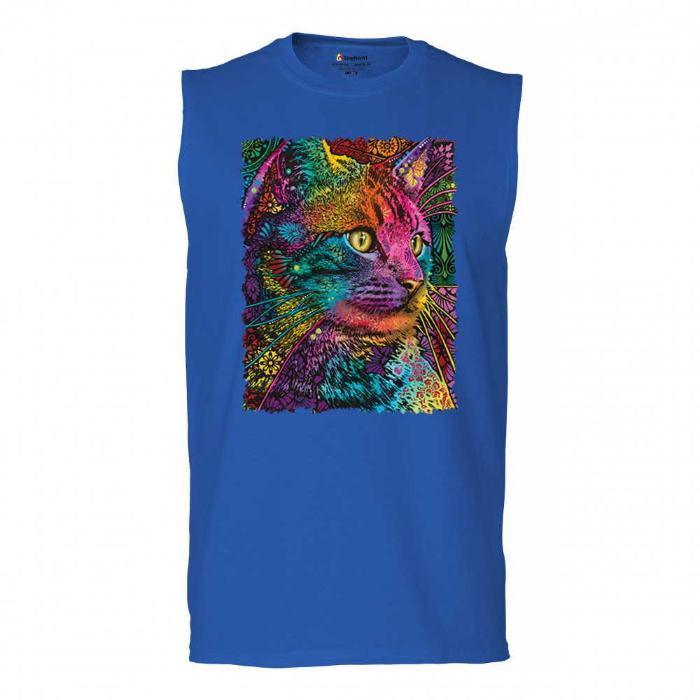 LOVABLE CAT muscle shirt dean russo colorful felis catus pattern art men's royal blue