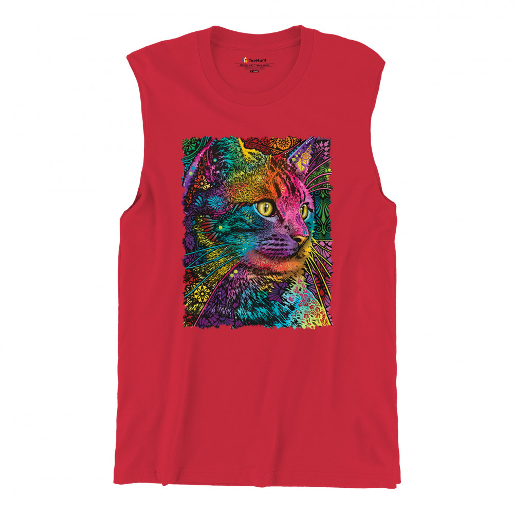 LOVABLE CAT muscle shirt dean russo colorful felis catus pattern art men's red