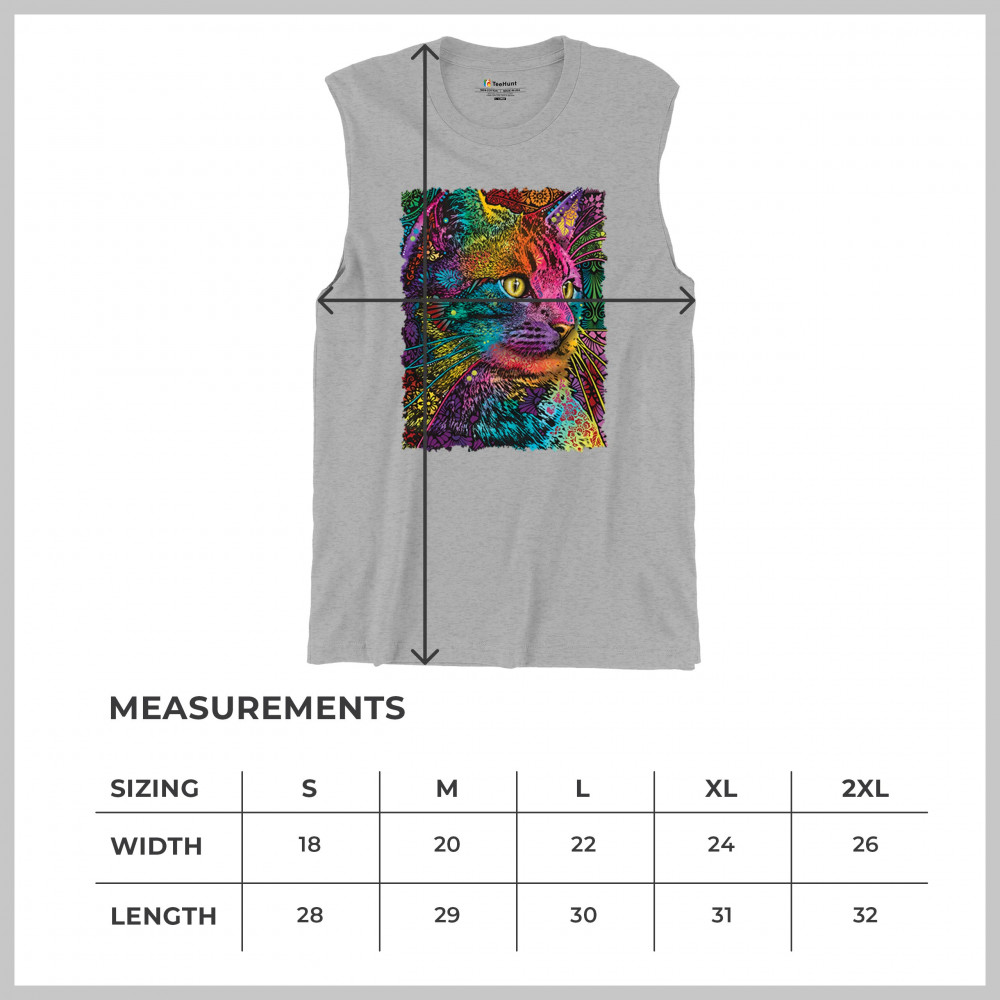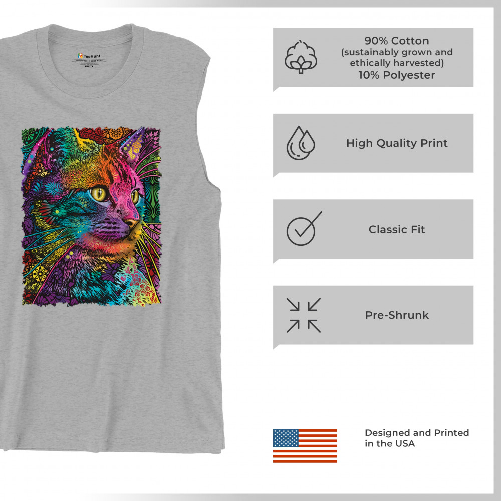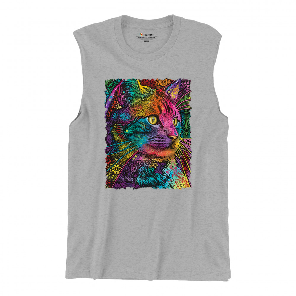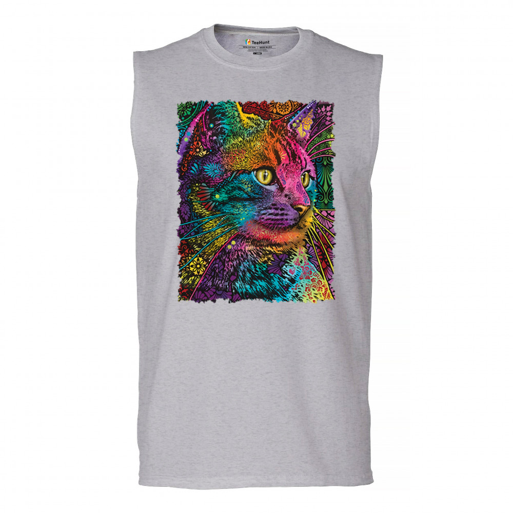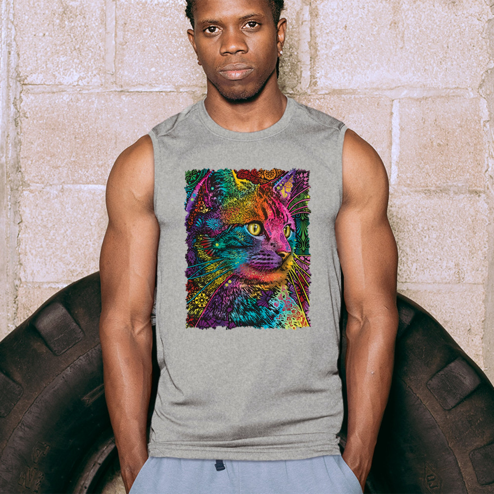 LOVABLE CAT muscle shirt dean russo colorful felis catus pattern art men's gray