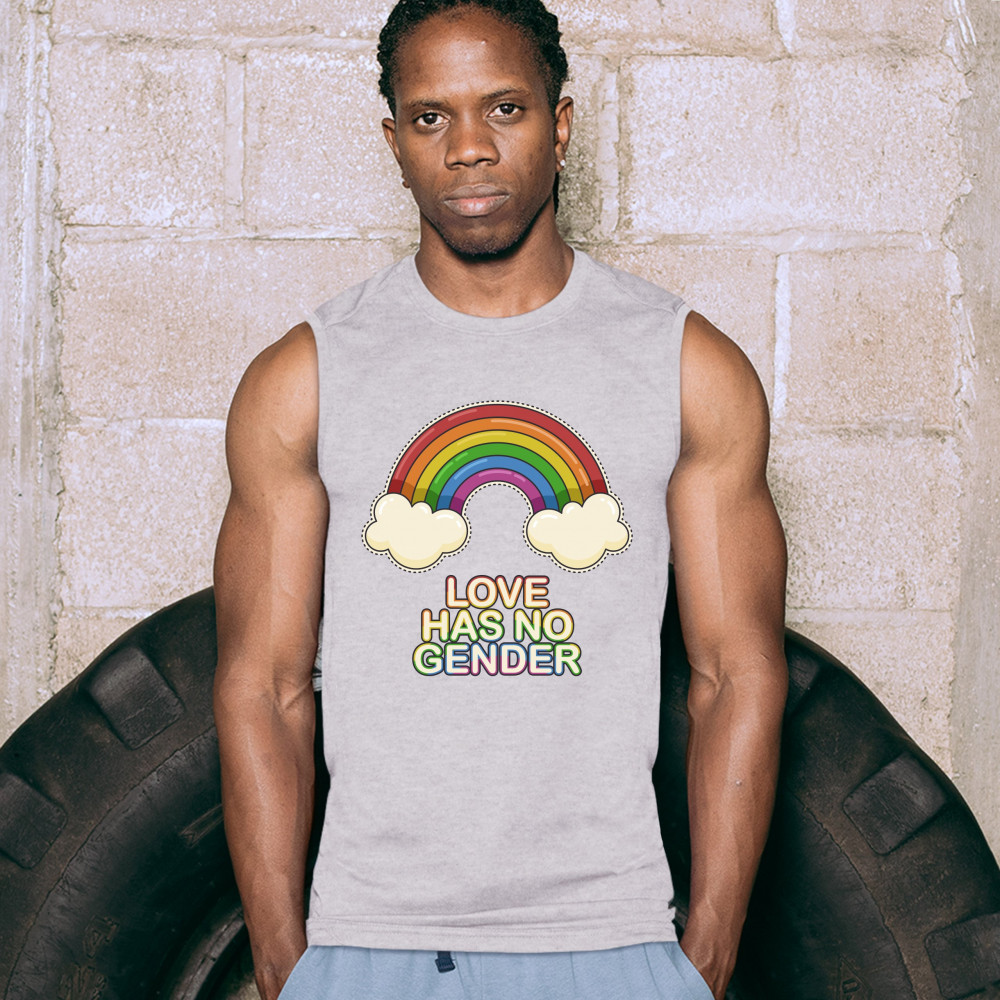 LOVE HAS NO GENDER muscle shirt gay pride queer rainbow love is love men's gray