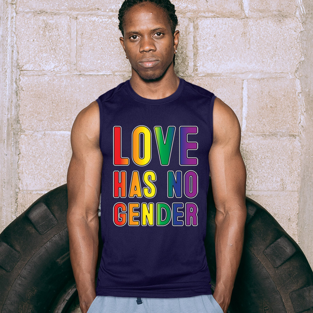 LOVE HAS NO GENDER muscle shirt lesbian gay bi transgender queer ally men's navy blue