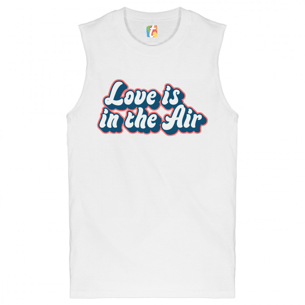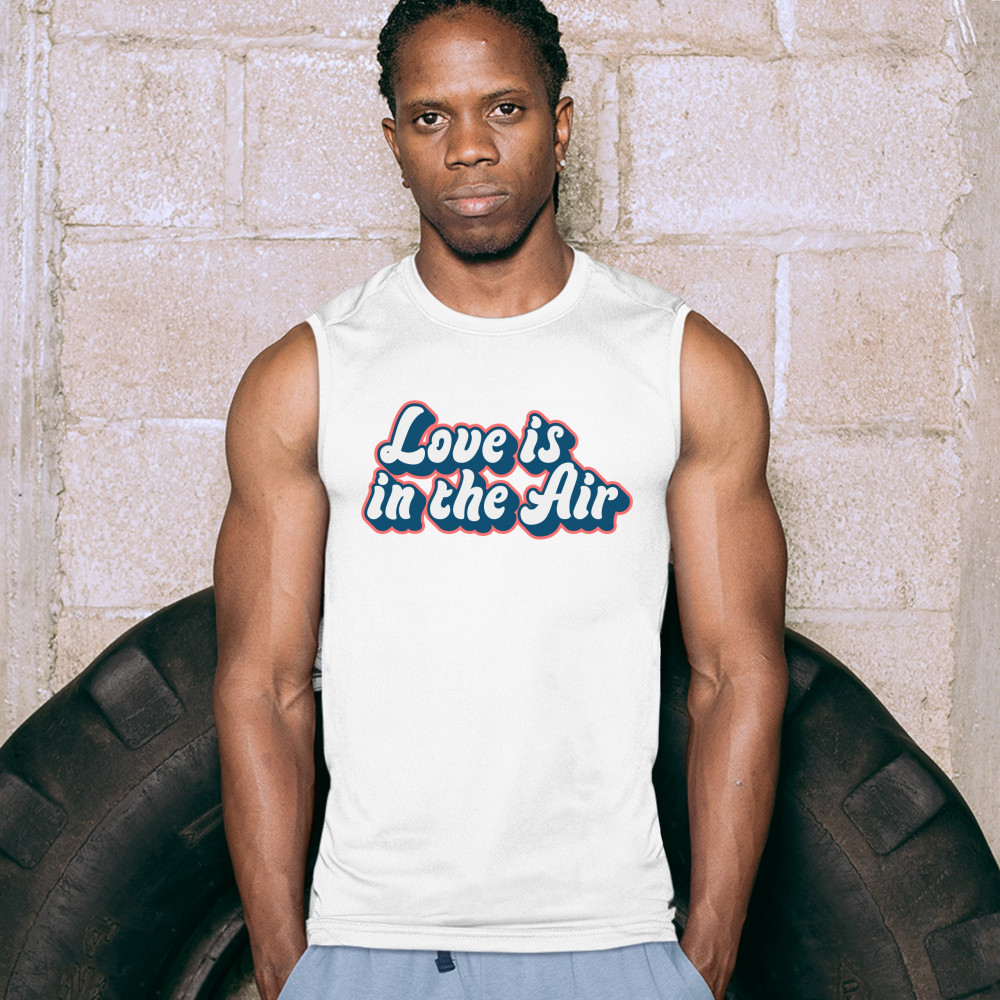 LOVE IS IN THE AIR muscle shirt happy valentine's day romance good vibes men's white