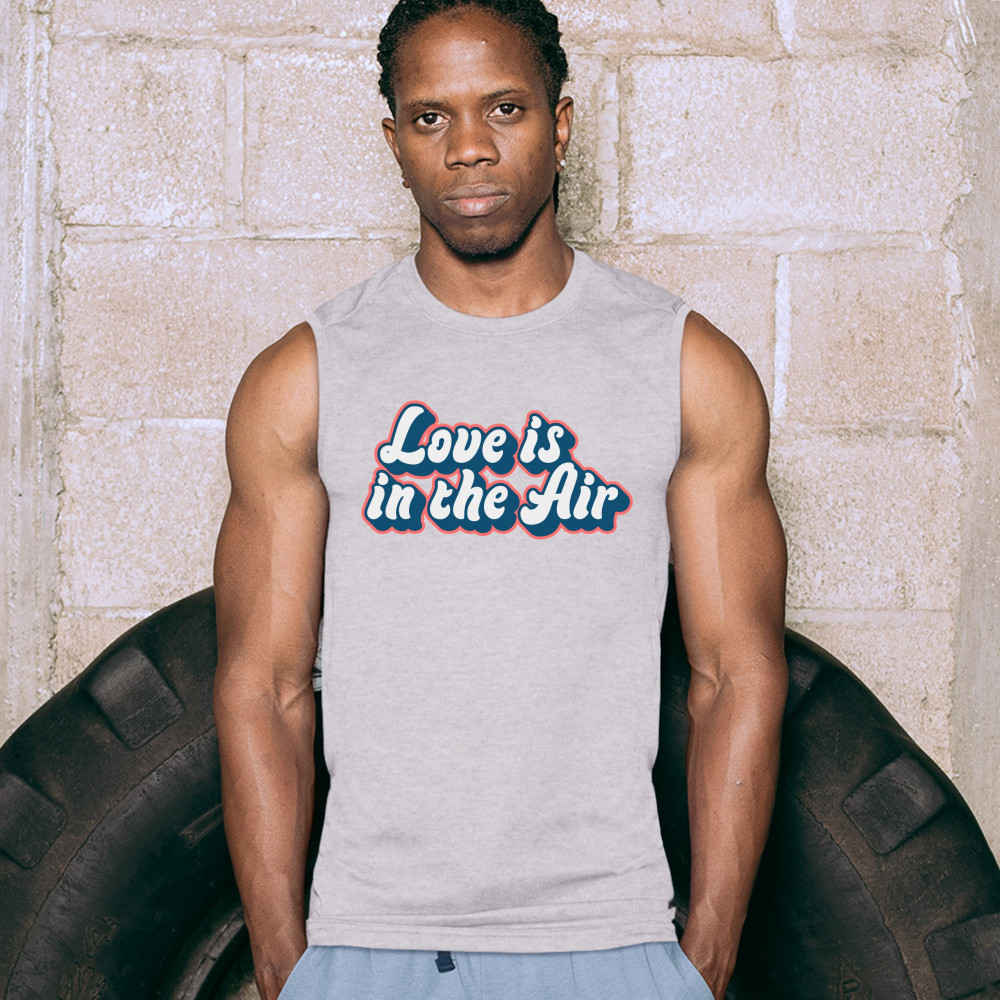 LOVE IS IN THE AIR muscle shirt happy valentine's day romance good vibes men's gray