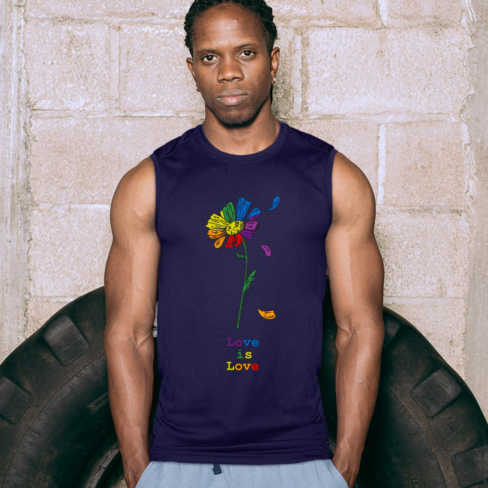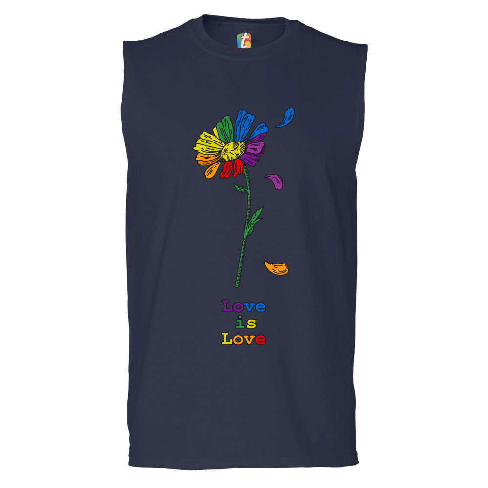 LOVE IS LOVE muscle shirt rainbow flower lgbt acceptance gay pride men's navy blue