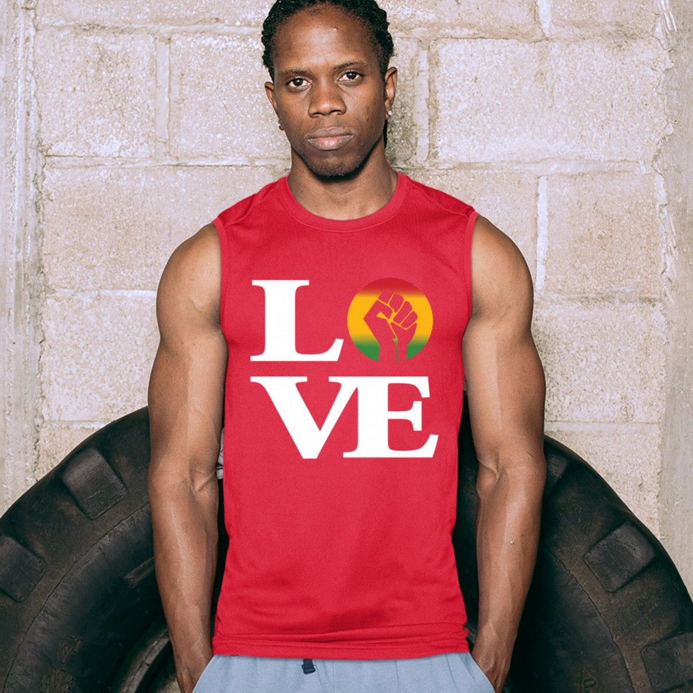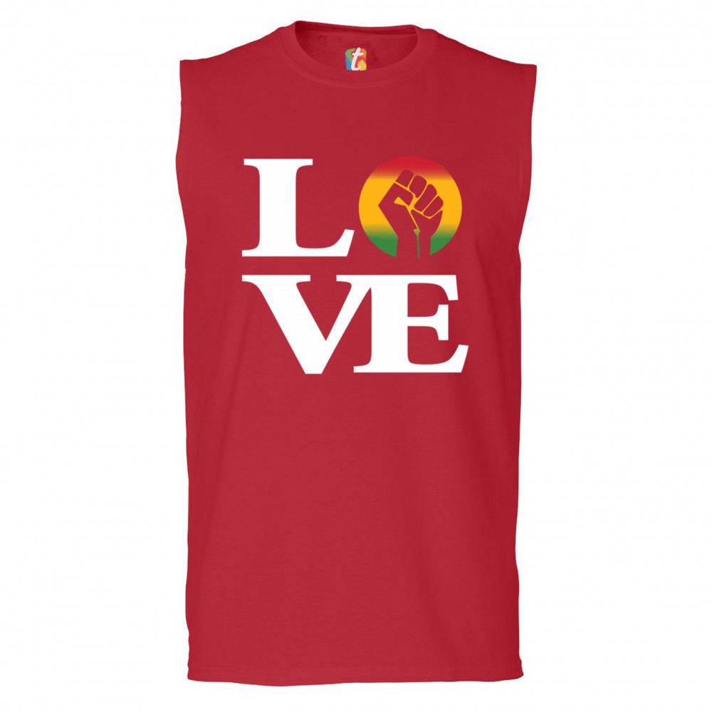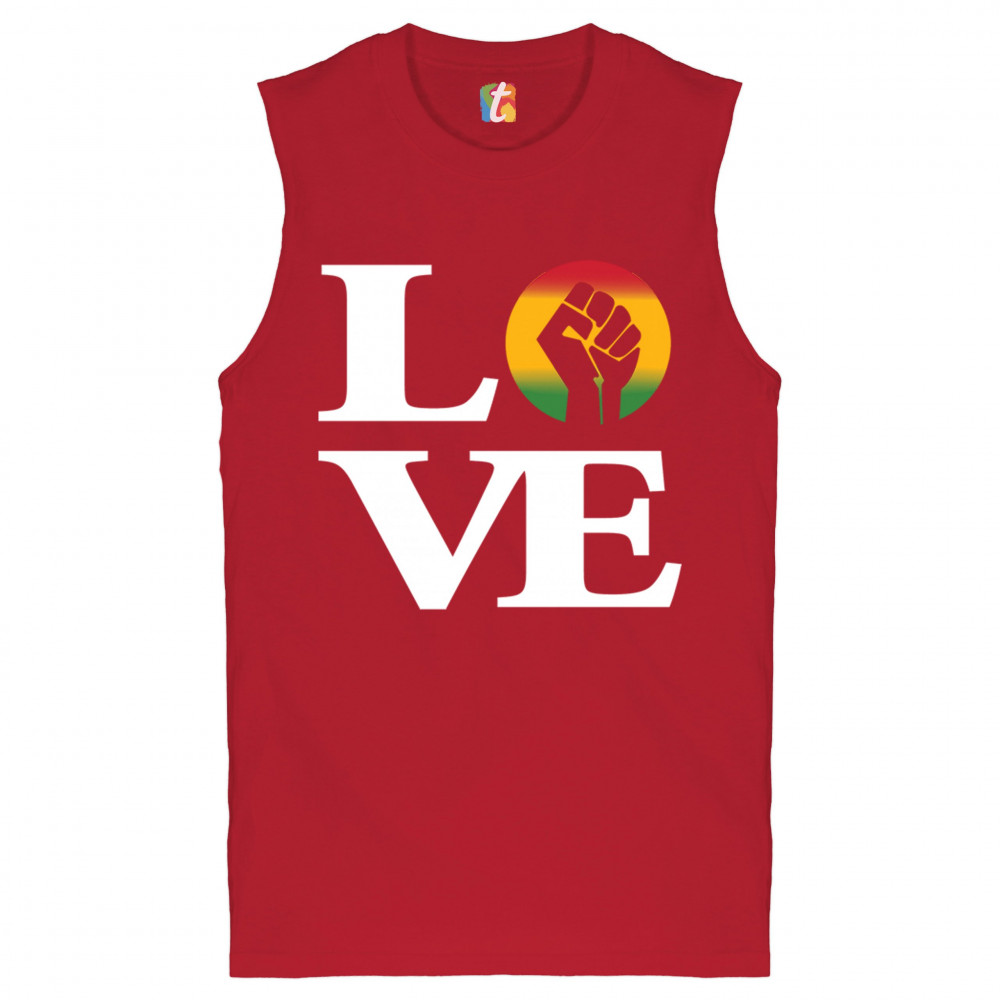 LOVE POWER FIST muscle shirt black lives matter african american men's red